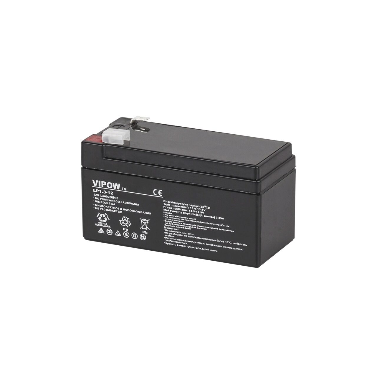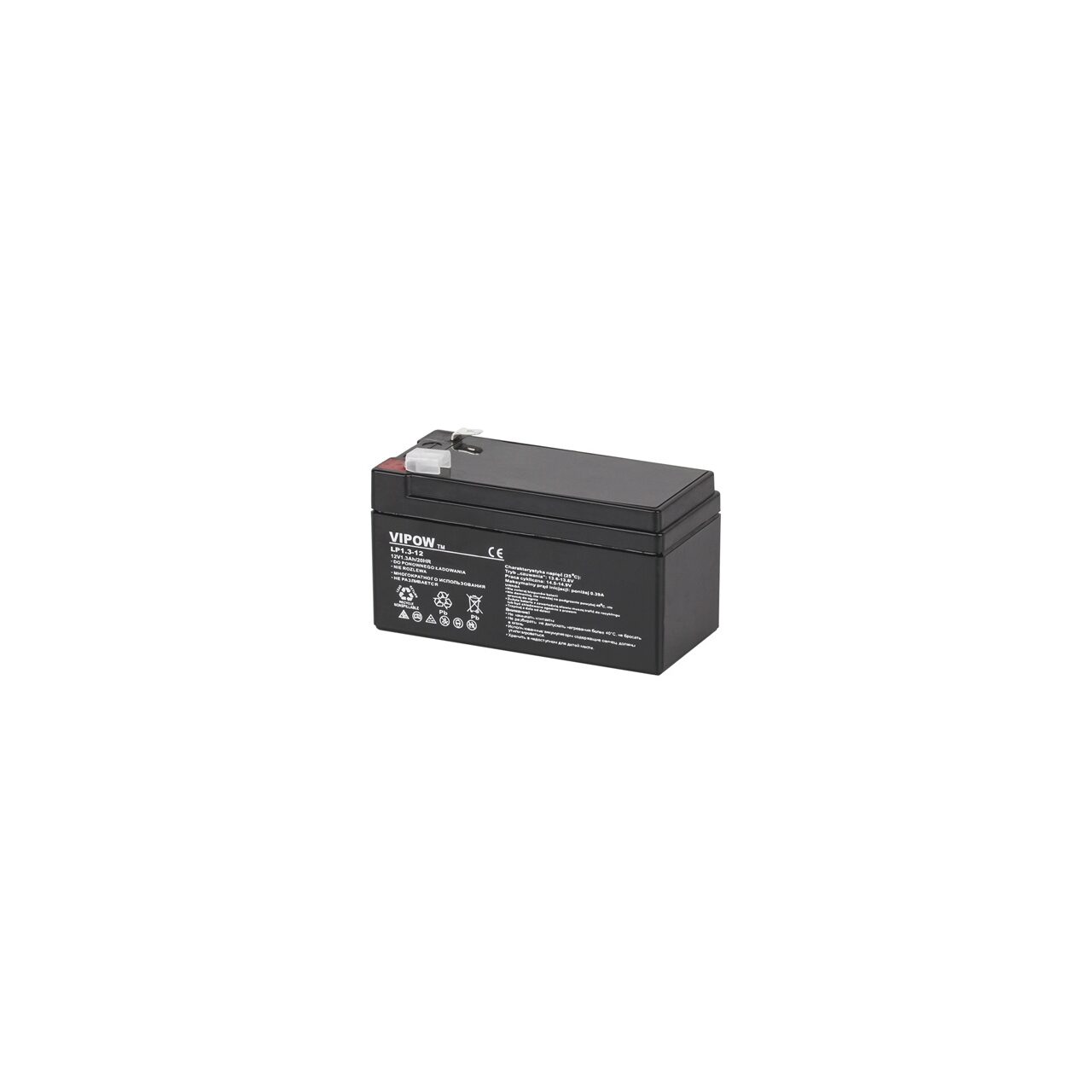 Descriere: Caracteristici tehnice: Tensiune: 12V Capacitate: 1.3 Ah Dimensiuni: - Lungime: 97 mm - Lățime: 43 mm - Înălțime: 53 mm - Înălțimea totală (cu terminale): 58 mm Greutate: 0.59 kg Pentru o descarcare in siguranta si pentru a prelungi durata de viata a bateriei, tensiunea finala de descarcare nu trebuie sa scada sub valorile urmatoare: - la un curent de descarcare cu o valoare de pana la 0.1 * capacitatea bateriei (A): minim 1.75 V - la un curent de descarcare cu o valoare intre la (0.11 ... 0.2) * capacitatea bateriei (A): minim 1.70 V - la un curent de descarcare cu o valoare intre la (0.21 ... 0.3) * capacitatea bateriei (A): minim 1.67 V - la un curent de descarcare cu o valoare intre la (0.31 ... 1) * capacitatea bateriei (A): minim 1.60 V - la un curent de descarcare cu o valoare peste 1.1 * capacitatea bateriei (A): minim 1.3 V De asemenea, o incarcare corecta va prelungi durata de viata a bateriei. Este necesar un control precis al tensiunii de incarcare, astfel: - in asteptare si tampon (floating): 2.25 si 2.3 V/element, la o temperatura de 25 ° C - in functionare ciclica: 2.35 si 2.45 V/element, la o temperatura de 25 ° C Curentul initial recomandat este de maxim 0.3 * capacitatea bateriei (A). Valoarea tensiunii de incarcare trebuie compensata cu temperatura: trebuie crescuta usor in cazul temperaturilor scazute (iarna) si scazuta in cazul temperaturilor crescute (vara) ( +/- 3 mV/ grad Celsius/ element in modul standby sau +/- 4 mV/ grad Celsius/ element in modul de operare ciclica). Rezistența internă (acumulator complet încărcat, la o temperatura de 25 ° C): 90 mOhm Efectul temperaturii asupra capacității bateriei: - la + 40 ° C: 102% - la + 25 ° C: 100% - la 0 ° C: 85% - la -15 ° C: 62% Autodescarcare (la 25 ° C) - capacitatea după 3 luni de depozitare: 91% - capacitatea după 6 luni de depozitare: 82% - capacitatea după 9 luni de depozitare: 64% Ambalare: 20 buc./carton Declaratia de conformitate in original poate fi vizualizata la adresa: http://www.lechpol.eu/sites/default/files/produkty/bat0213/cert/cert_bat0213.jpg NOTA: NU SE VA FOLOSI LA DISPOZITIVE CU TRACȚIUNE ELECTRICĂ - trotinete electrice, biciclete electrice, etc.!!! Acest acumulator nu este proiectat pentru a fi utilizat la astfel de aplicații!!!