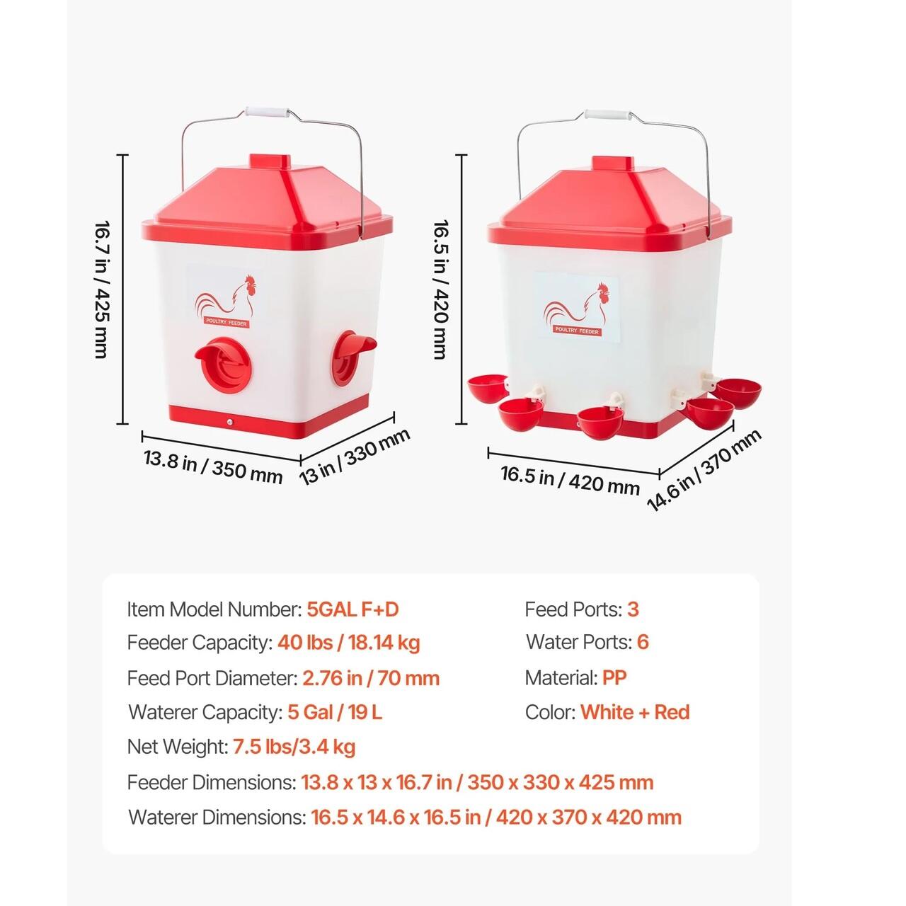 Kit hranitor si adapator automat: Setul nostru de hranitor automat pentru pui are un hranitor de 18 kg (3 porturi) si o adapatoare de 22 litri (6 porturi), ambele fabricate din PP. Designul alimentat prin gravitatie mentine hrana si apa proaspete si curate, economisind timp si efort, chiar si in timpul absentelor scurte.