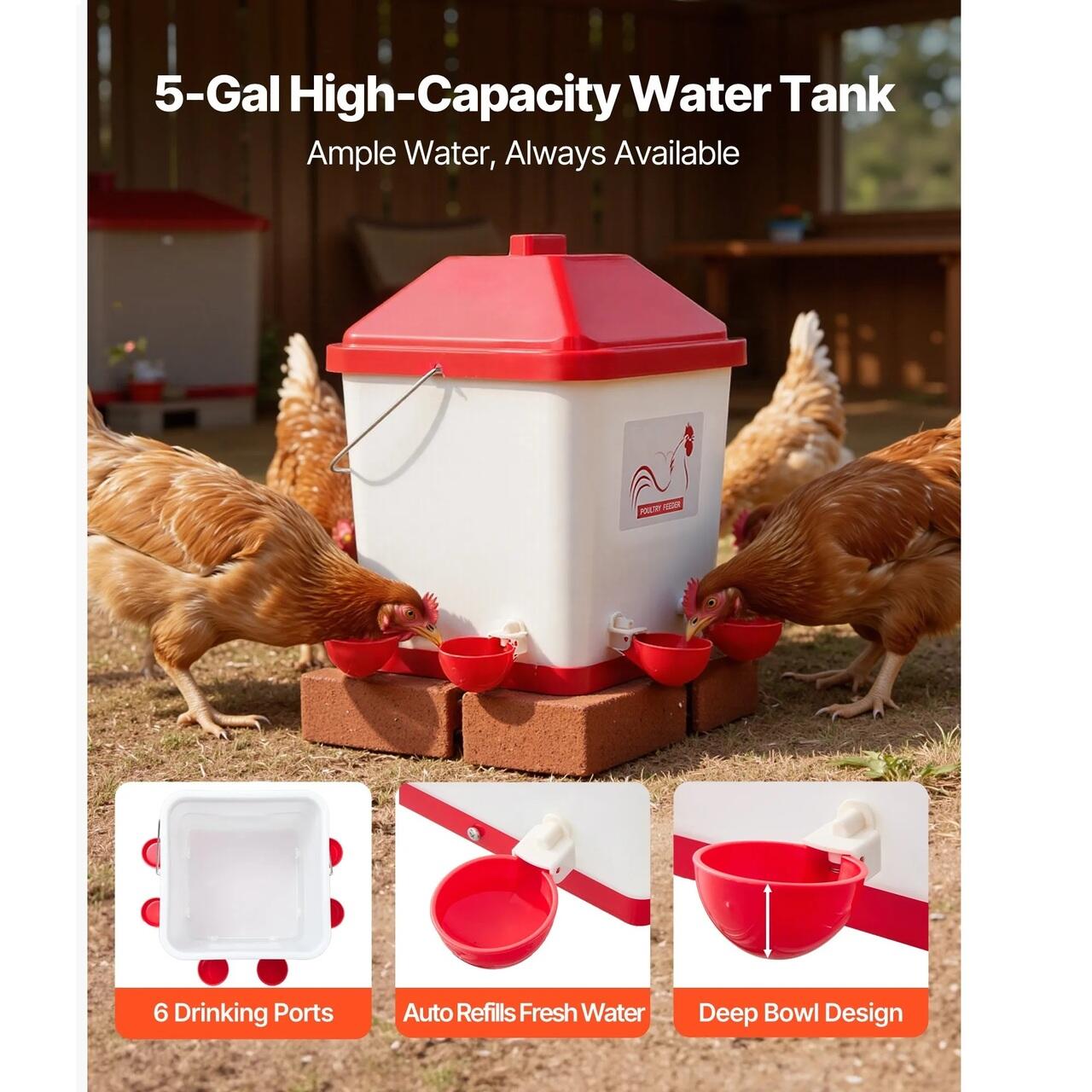 Rezerva ampla de apa: Apatoarele de 19 litri asigura apa potabila curata pentru pasarile de curte. Dispune de un sistem automat de reumplere care mentine o alimentare constanta cu apa, reducand expunerea la apa si minimizand riscul de imbolnavire cauzat de contaminare.