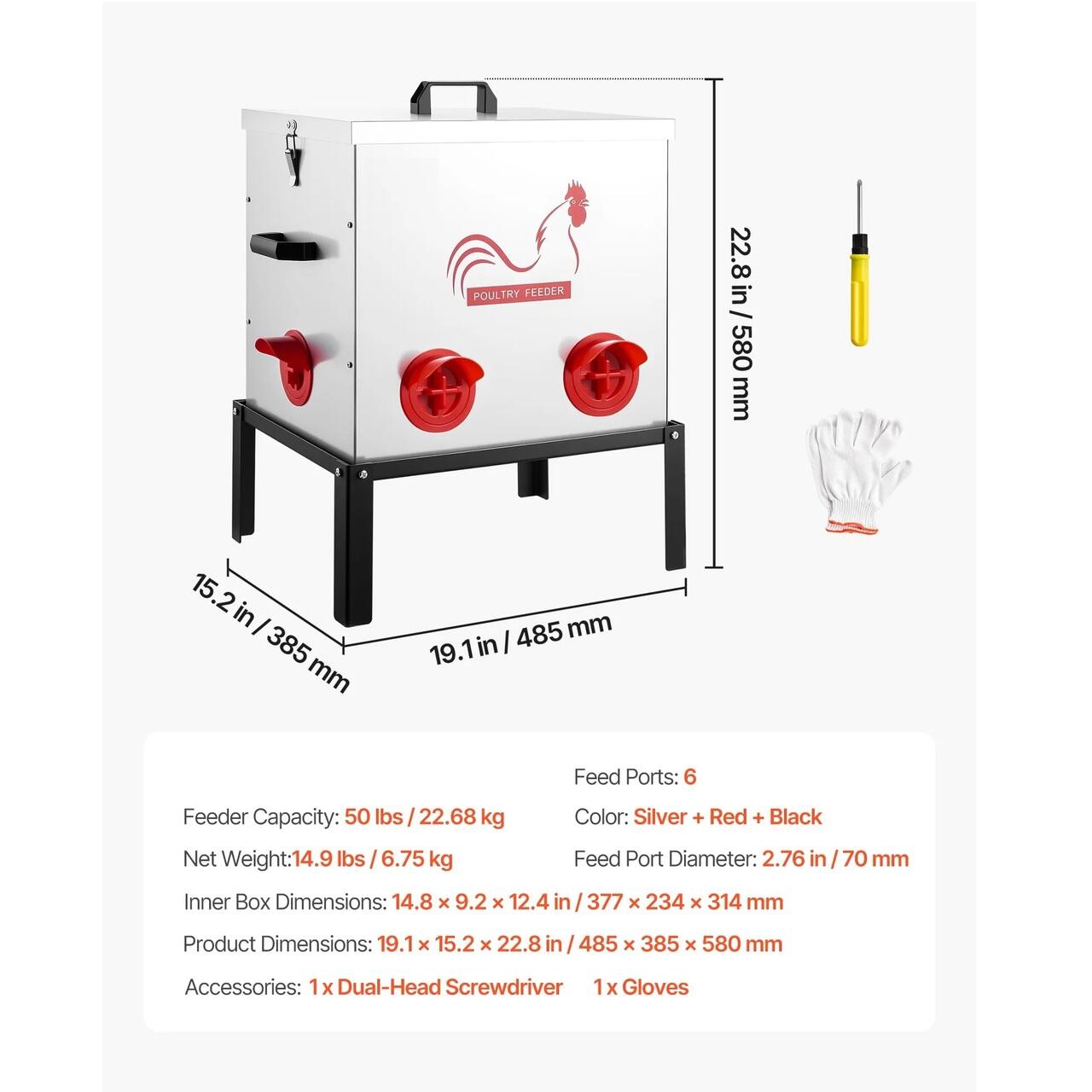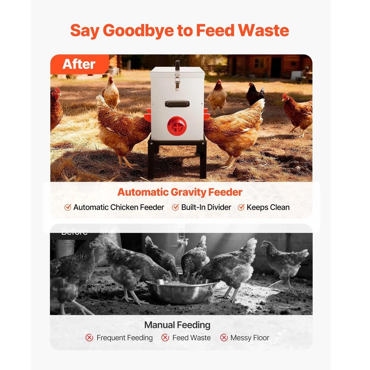 Durabil si construit pentru a rezista: Fabricat din otel galvanizat cu orificii de alimentare din PP, acest hranitor de pui impermeabil este rezistent la rugina si coroziune si usor de curatat. Picioarele din otel ranforsat sunt potrivite pentru utilizare in interior sau in exterior. Cu un manual detaliat si unelte pentru asamblare rapida.