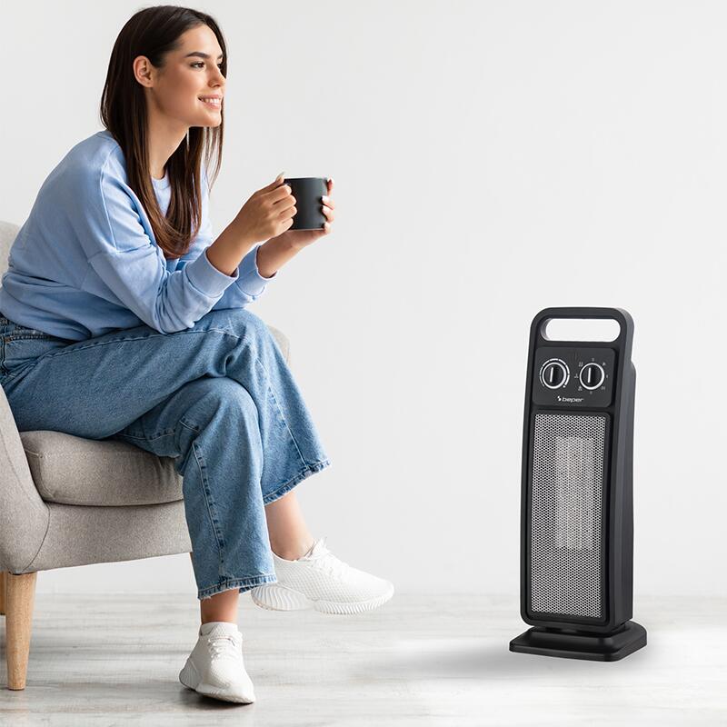 Aeroterma ceramica turn, 18 x 19 x 50 cm, termostat reglabil, Negru, 2000 W