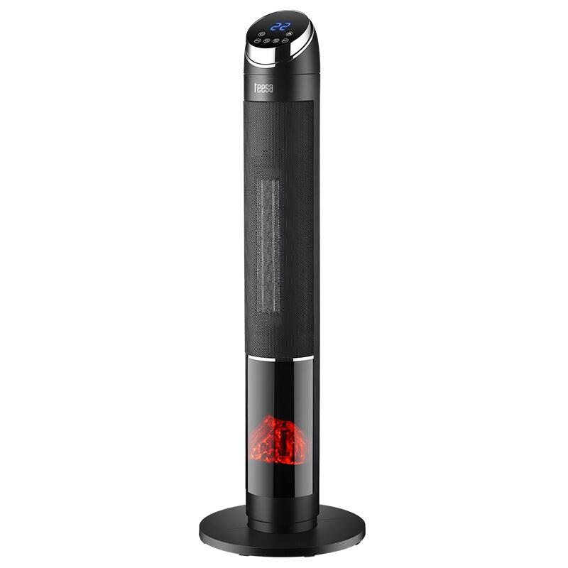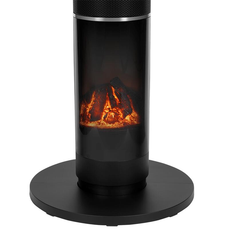 Aeroterma turn, Efect flacara, 1000 W / 2000 W, Telecomanda, Negru, Oscilație automată
