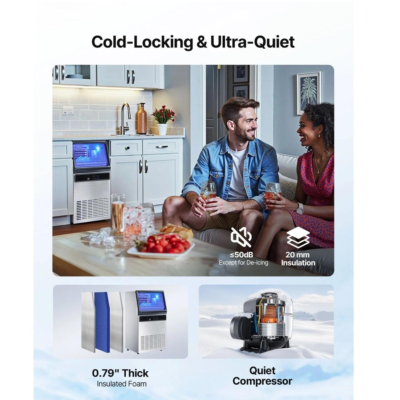 Silentios si izolatie: Aceasta masina de gheata silentioasa dispune de un compresor cu zgomot redus (≤50 dB) si o izolatie cu grosimea de 0,79" pentru a mentine gheata rece mai mult timp. Bucurati-va de gheata proaspata si de un mediu linistit - fara a va perturba locuinta sau spatiul de lucru.