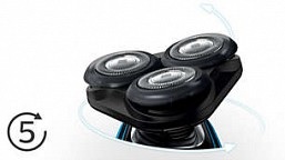 Capetele flexibile in 5 directii cu 5 miscari independente asigura un contact apropiat cu pielea, pentru un barbierit rapid si precis chiar si pe gat si pe maxilar.