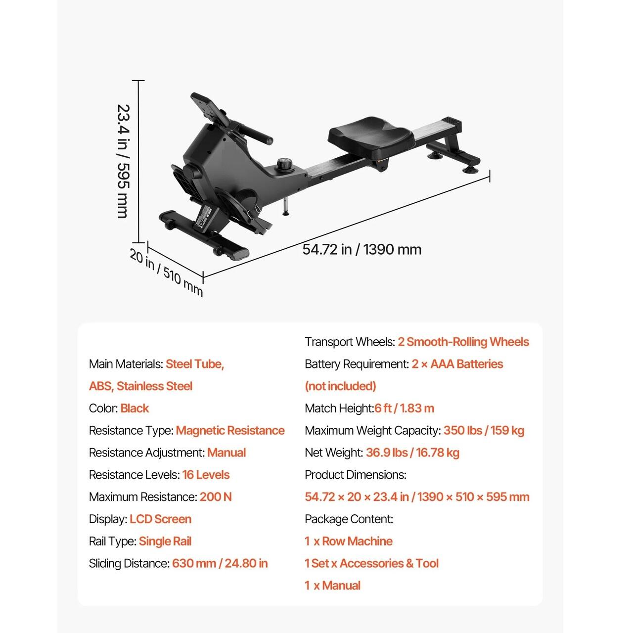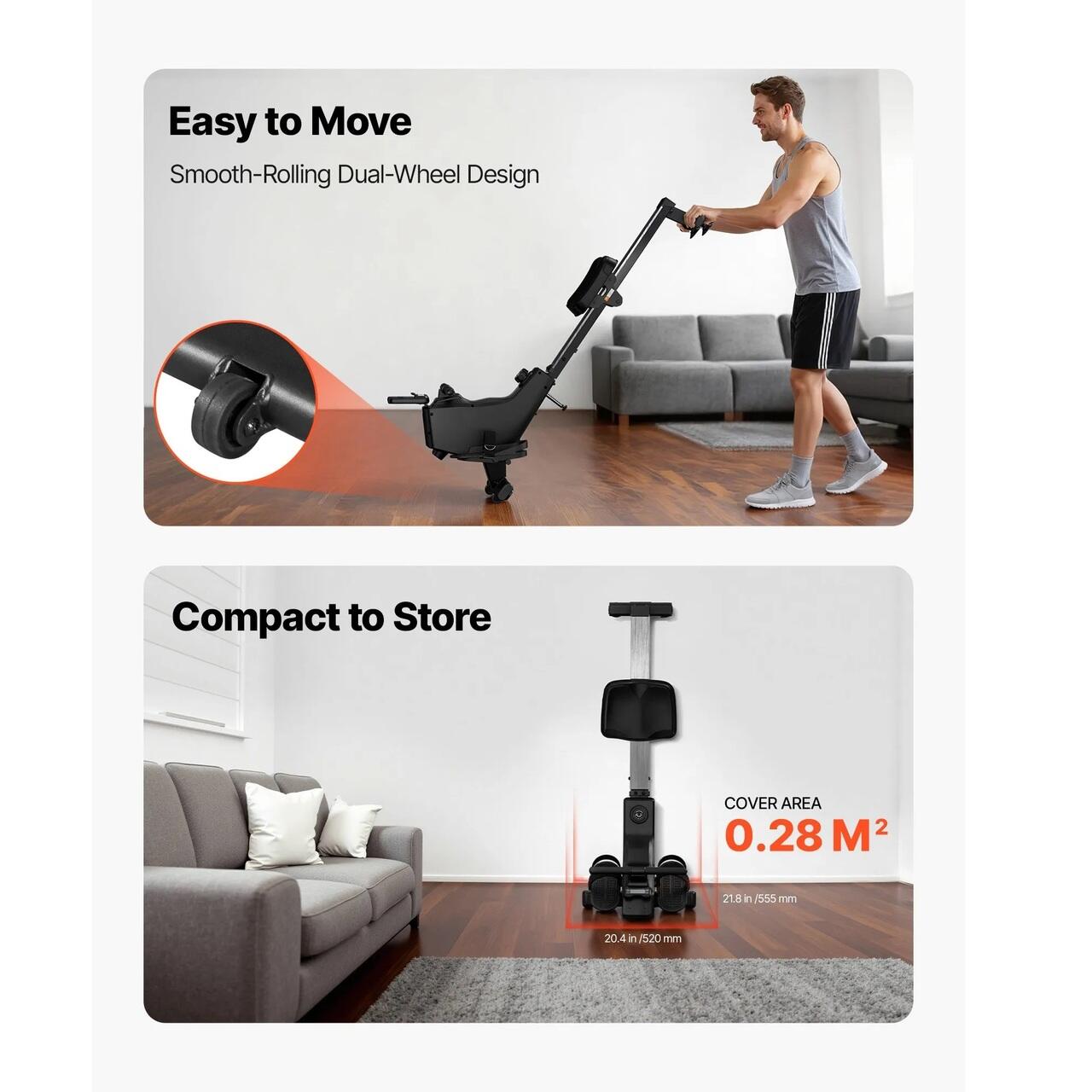 Capacitate mare de incarcare de 158 kg: Acest aparat de vaslit solid sustine pana la 158 kg. Este stabil pentru toate tipurile de corp, asigurand antrenamente sigure si fara oscilatii. Aparatul de vaslit este dotat cu roti duble cu rulare lina pentru o deplasare usoara si se pliaza vertical pentru a economisi spatiu de depozitare.
