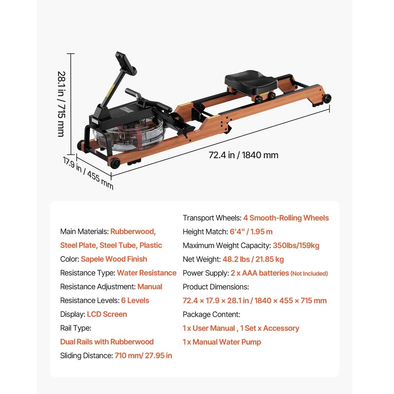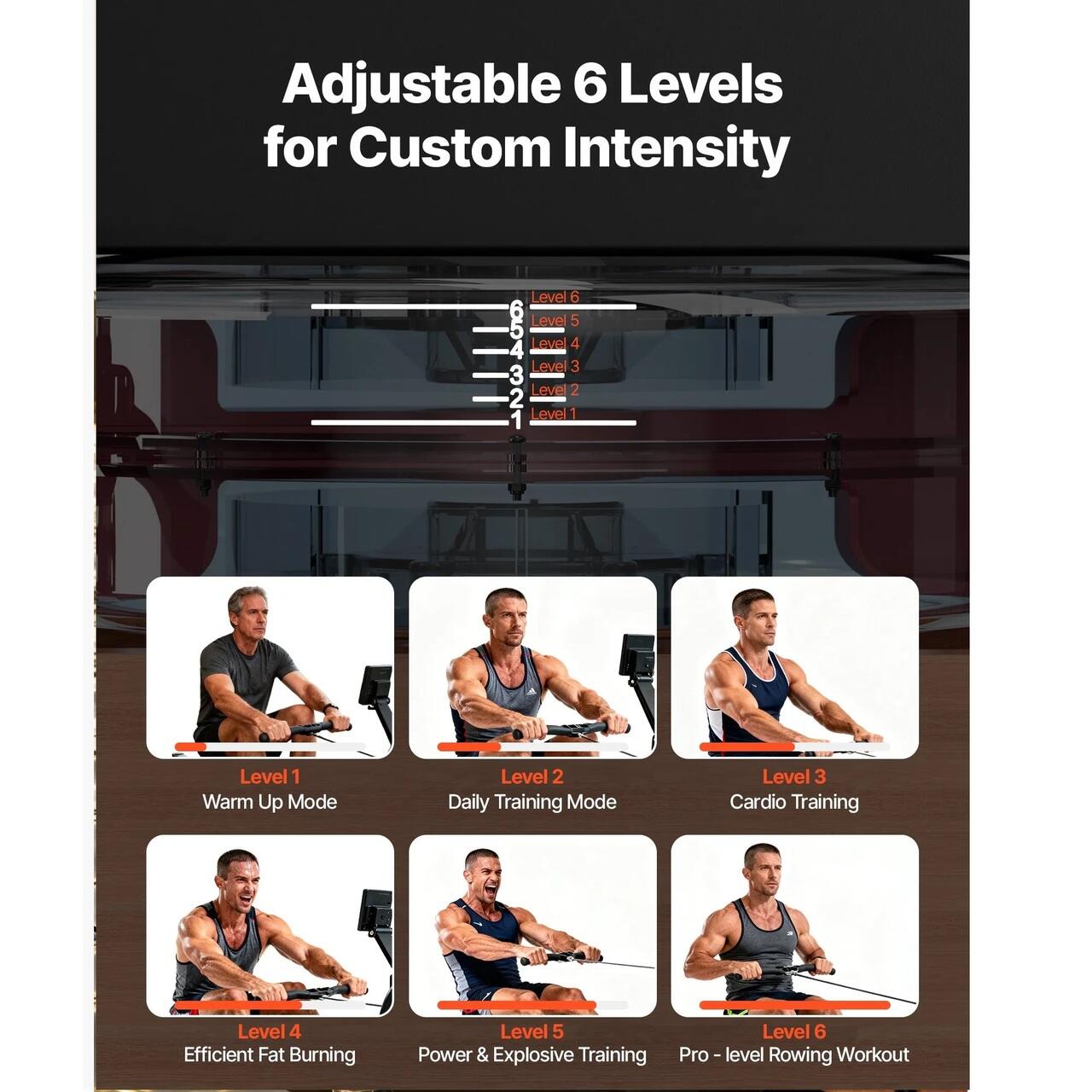 Rezistenta reglabila pe 6 niveluri: Aparatul de vaslit pe apa dispune de un rezervor de apa de mare capacitate de 14 litri cu 6 niveluri de rezistenta, acoperind totul, de la incalzire pana la antrenamentul pe intervale de intensitate ridicata. Butonul usor de utilizat permite ajustari rapide, potrivite pentru toti membrii familiei.