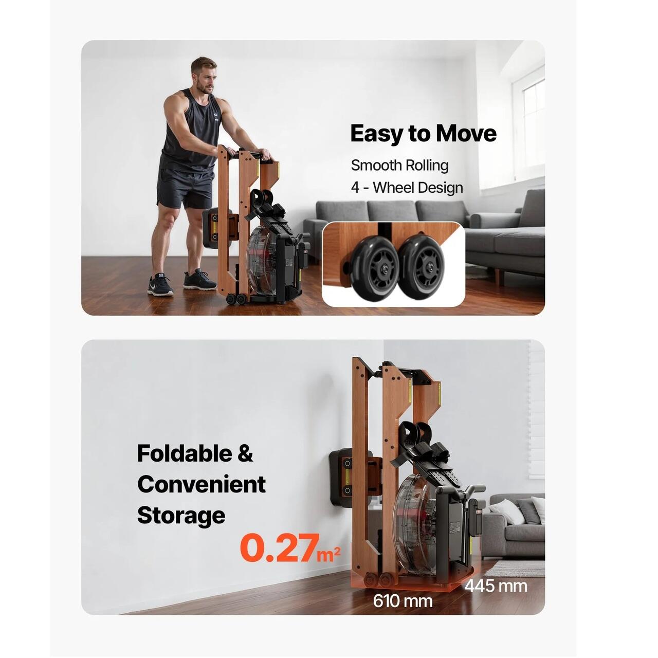 Capacitate mare de incarcare de 158 kg: Aparatul de vaslit solid suporta pana la 158 kg cu un cadru durabil din lemn de hevea, oferind un antrenament stabil si fara oscilatii pentru utilizatori de toate dimensiunile. Adauga o nota sustenabila, sanatoasa si eleganta casei tale. Designul fin cu 4 roti permite o miscare fara efort, iar aparatul de vaslit se pliaza vertical pentru o depozitare care economiseste spatiu.