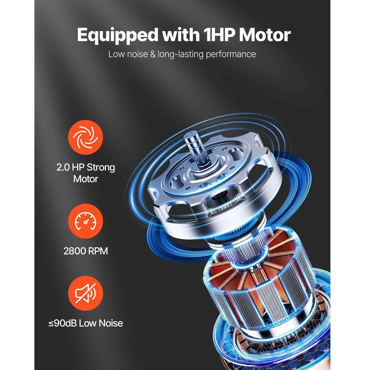 Motor de putere mare: Echipat cu un motor fara perii de 2,0 CP, acest colector de praf cu con vortex ofera un flux de aer robust si constant. Designul sau rezistent la suprasarcina asigura durabilitate, in timp ce functionarea cu zgomot redus la ≤90dB permite utilizarea prelungita fara distragere a atentiei, sustinand o gestionare eficienta si continua a prafului.