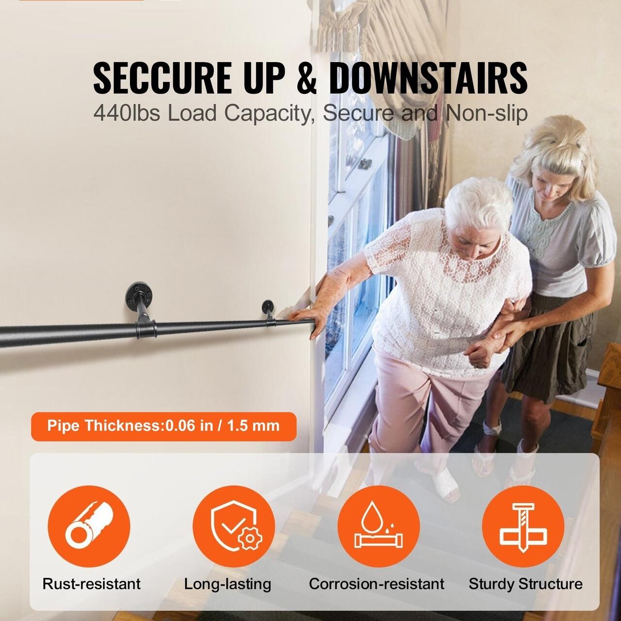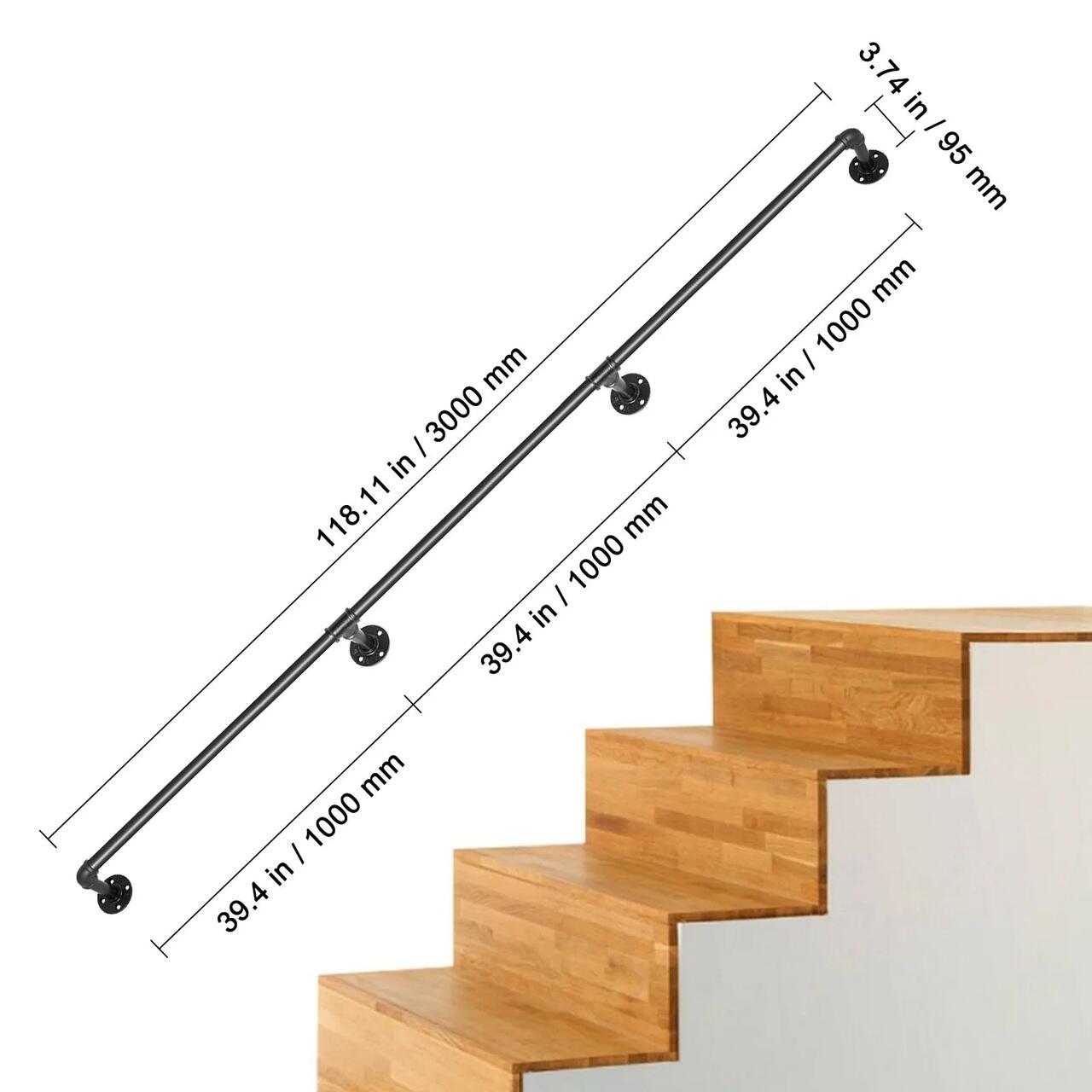 Securizat scara sus/jos: diametrul conductei: 1,26”/ 32 mm; Grosimea tevii: 0,06”/ 1,5 mm; Lungimea fiecarei tevi: 39,4”/ 100 cm; Cantitate: 3 balustrade; Lungime totala: 3 m. Balustrada de scara cu teava de rezistenta poate suporta 200 kg incarcand fiecare suport. Prin urmare, poate fi folosit ca bara de sprijin pentru sus si jos, in special pentru copii, varstnici, femei insarcinate si persoanele care au dificultati in urcarea scarilor.
