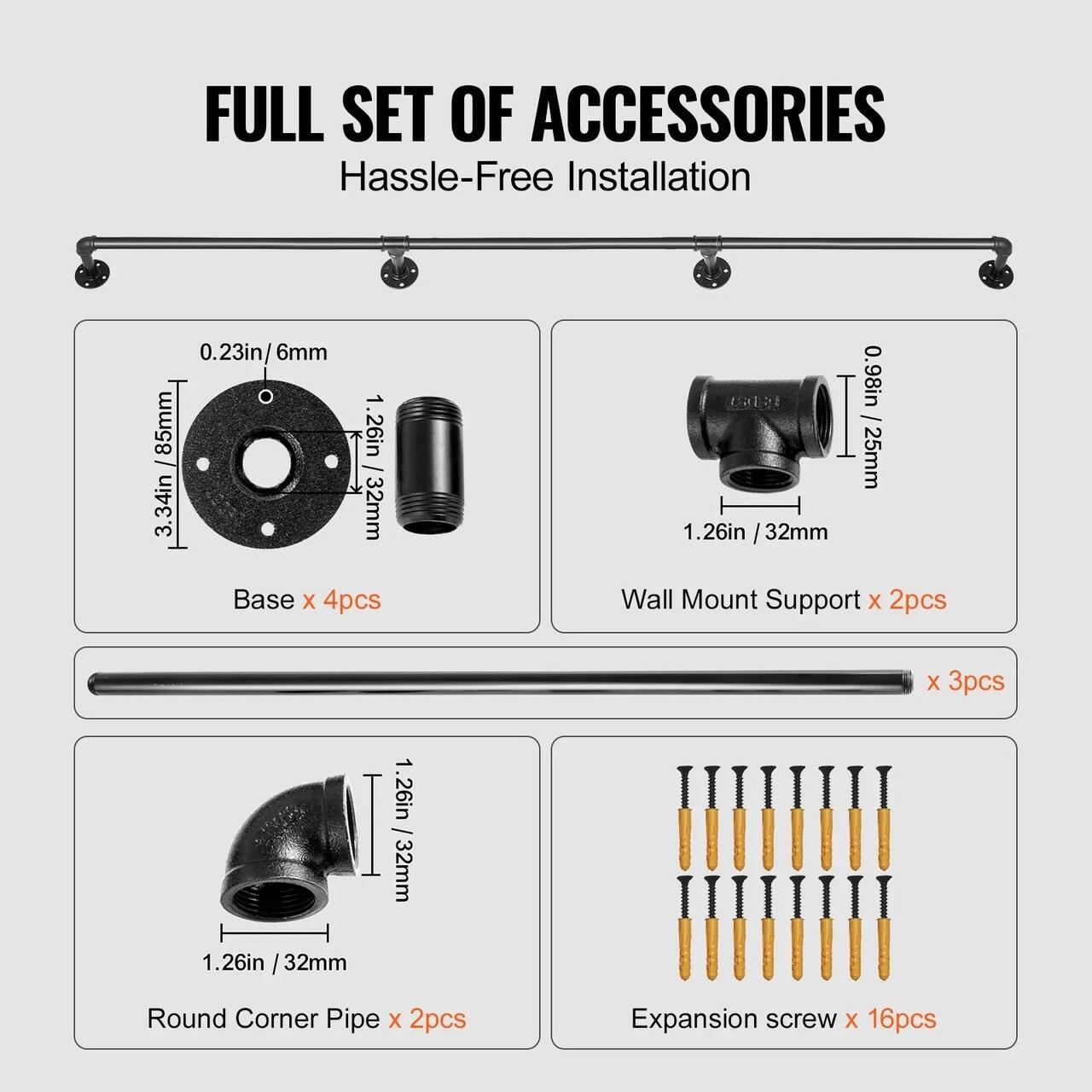Kit complet de balustrada: Toate accesoriile sunt incluse pentru instalarea unei balustrade pentru teava. Baza de φ3,34”/ 85 mm si fiecare baza cu patru pregauri si suruburi de expansiune asigura fixarea stransa a balustradei pe perete. Un suport de perete in forma de T poate conecta suporturi din mai multe piese; φ1,26”/ 32 mm teava de colt rotund, asigurati-va ca nu va prindeti hainele sau nu va zgariati cand treceti.
