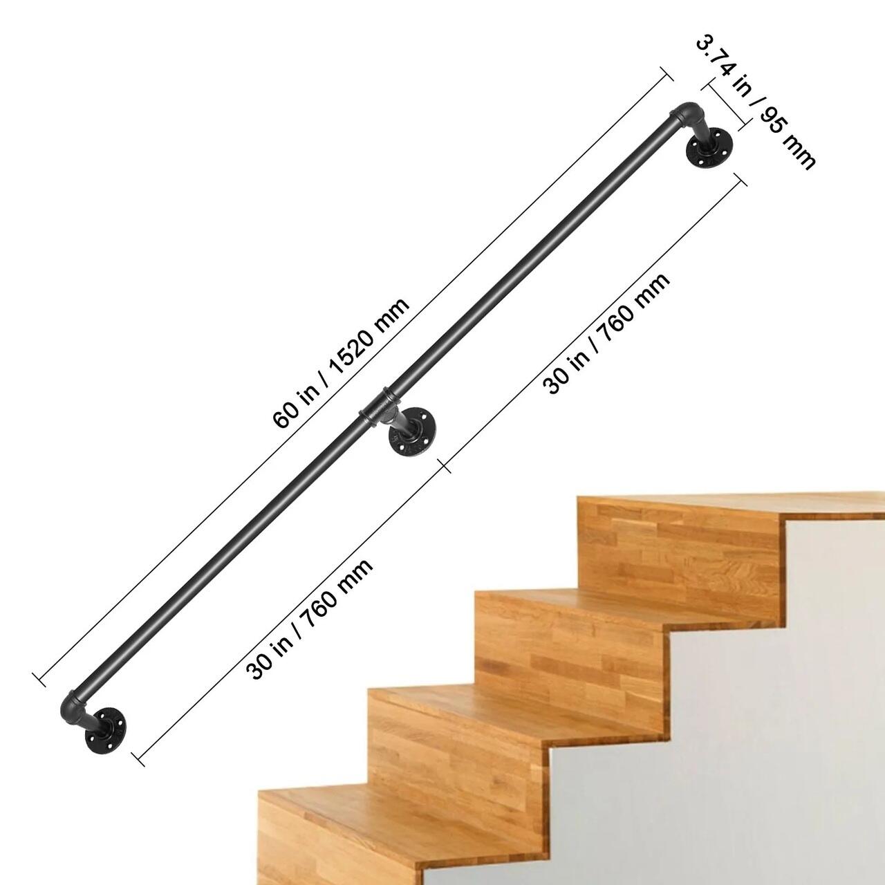 Securizat scara sus/jos: diametrul conductei: 1,26”/ 32 mm; Grosimea tevii: 0,06”/ 1,5 mm; Lungimea fiecarei tevi: 29,9"/ 76 cm; Cantitate: 2 balustrade; Lungime totala: 1,52 m. Balustrada pentru scara cu teava rezistenta poate suporta 200 kg la incarcarea fiecarui suport. Prin urmare, poate fi folosita ca bara de prindere pentru sus si jos, in special pentru batrani si copii care se urca cu dificultate la batrani si copii scari.