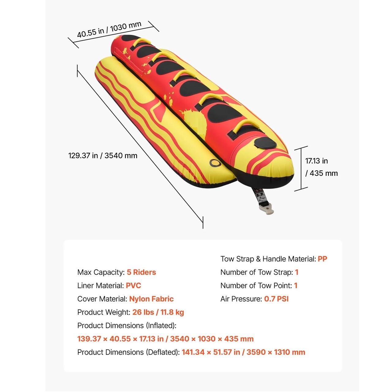 Banana gonflabila pentru sporturi acvatice, max 385 kg, portocaliu/galben, 5 x persoane