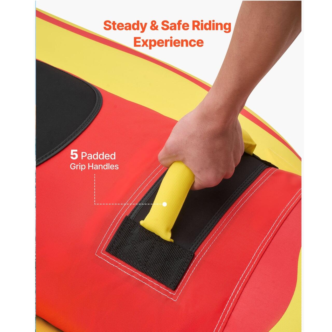 Confort si stabilitate imbunatatite: Tubul nostru remorcabil pentru 5 persoane este prevazut cu 5 manere captusite pentru o prindere mai confortabila si mai sigura. Iar orificiul de drenaj ajuta la prevenirea scufundarii sau a incetinirii, mentinand o viteza lina si controlul pe apa.