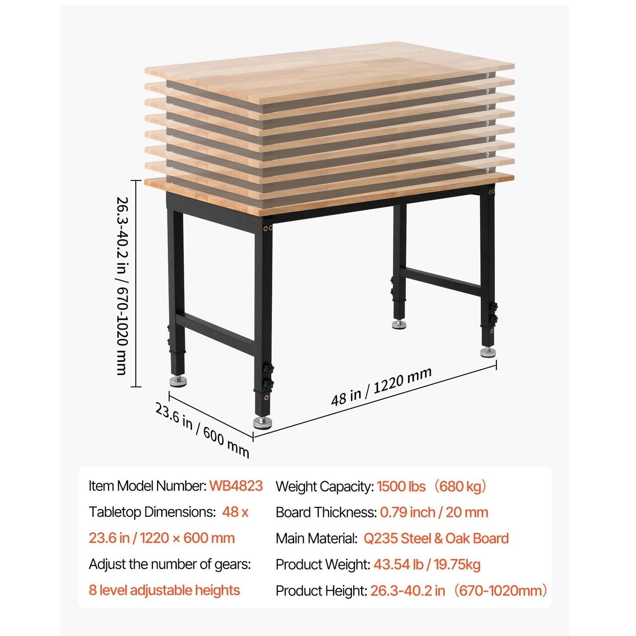 Reglare a inaltimii in 8 pozitii: Aceasta banca de lucru cu blat din lemn de stejar se schimba de la 67 cm la 101 cm prin miscarea suruburilor picioarelor. Puteti regla o pozitie confortabila atat pentru sezut, cat si pentru stat in picioare, astfel incat fiecare utilizator sa gaseasca locul potrivit.