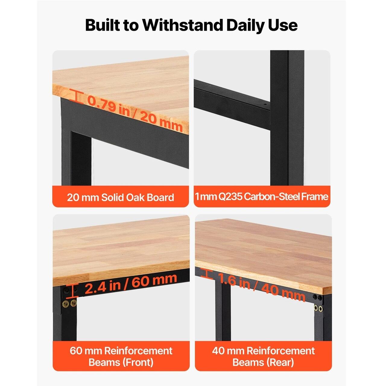 Constructie robusta, durata lunga de viata: Aceasta masa de lucru din lemn masiv combina un blat din stejar masiv de 2 cm cu un cadru din otel acoperit. O stergeti cu o carpa umeda, iar structura ramane stabila si rezista coroziunii.