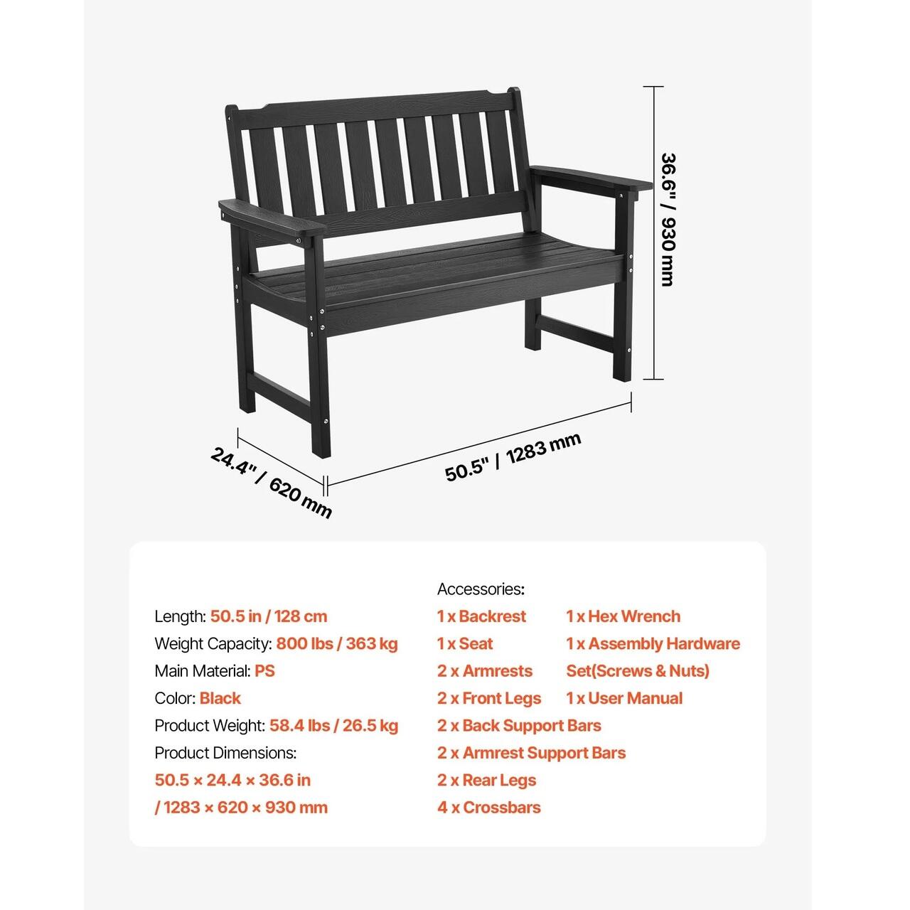 Asamblare rapida si usoara: Aceasta banca de parc este usor de asamblat - trebuie doar sa conectati piesele preasamblate. Toate componentele necesare si instructiunile pas cu pas sunt incluse pentru o experienta de instalare rapida.