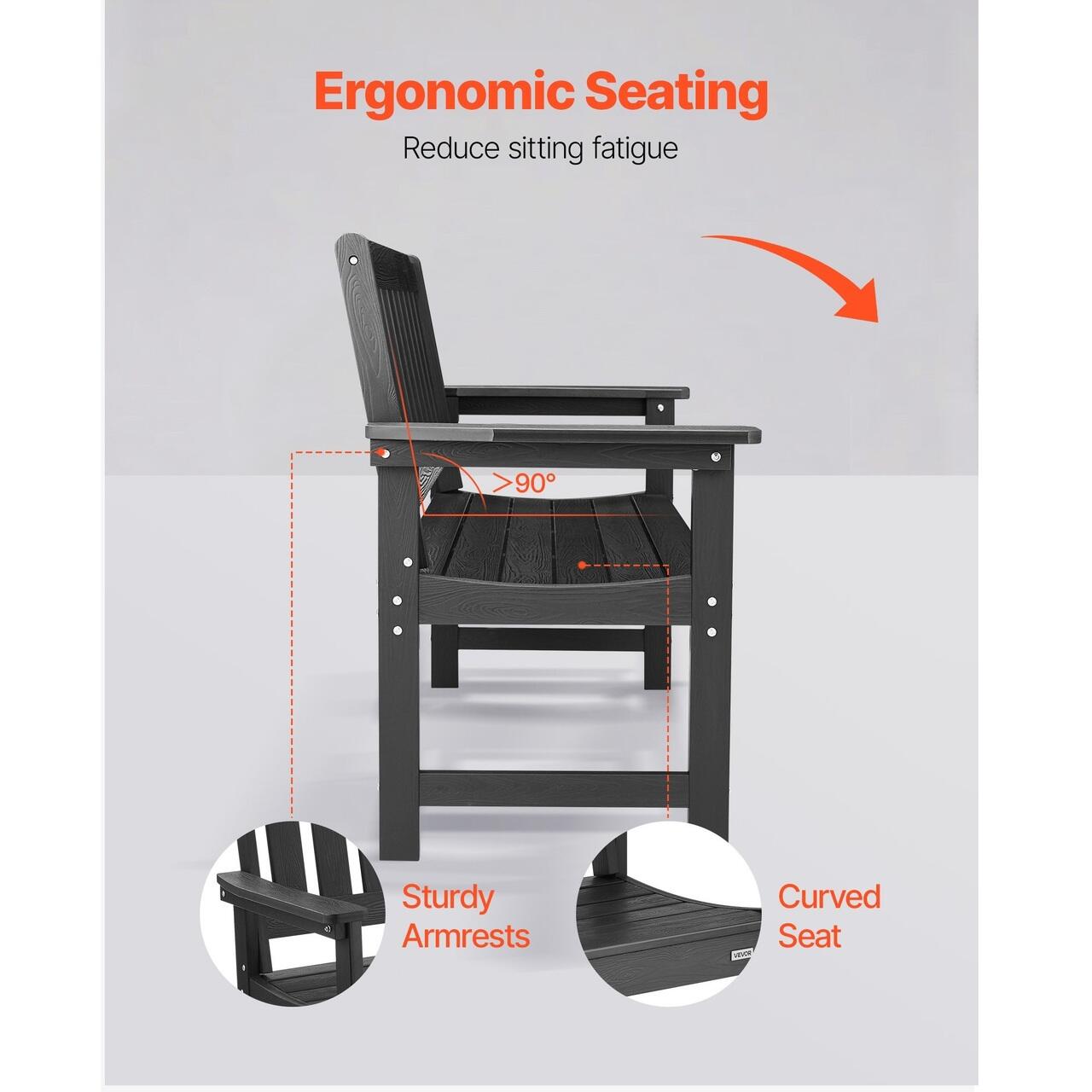 Sezuturi confortabile: Cu o lungime de 127 cm si o greutate de pana la 360 kg, aceasta banca de terasa ofera un loc confortabil pentru 2-3 persoane. Sezutul curbat relaxeaza soldurile si picioarele, in timp ce spatarul si cotierele cu un unghi de peste 90° incurajeaza o postura mai naturala si mai deschisa.