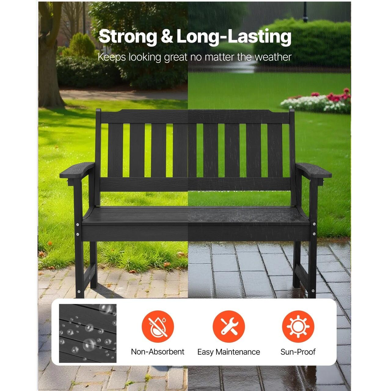 Construita pentru exterior: Aceasta banca de exterior este fabricata din polistiren premium, rezistent la apa, ploaie si zapada. Rezista la toate conditiile meteorologice fara a crapa sau deforma - nu necesita intretinere speciala.