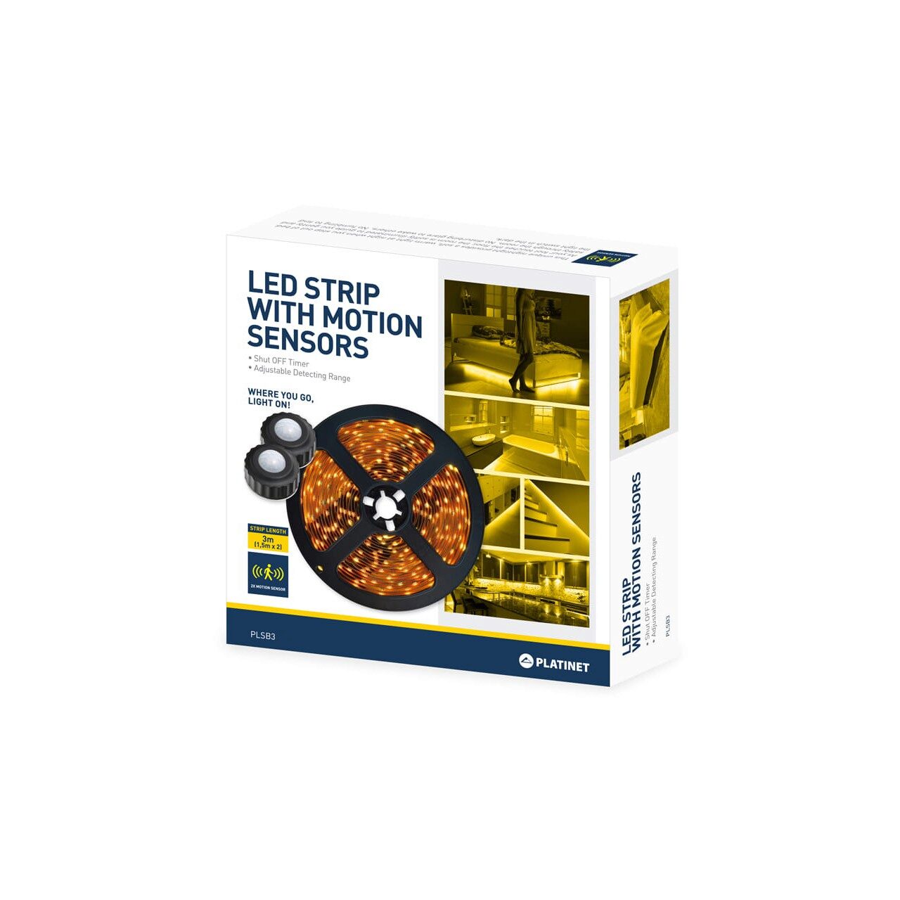 Banda Led Platinet 3m , 2 senzori. Specificații Utilizare: interior Tip banda: flexibila Tip control: manual Conectivitate: infrarosu Continut pachet: 1 x banda LED, 1 x conector banda LED, sursa de alimentare 72W Culoare: alb Lungime: 3 m Latime: 20 mm