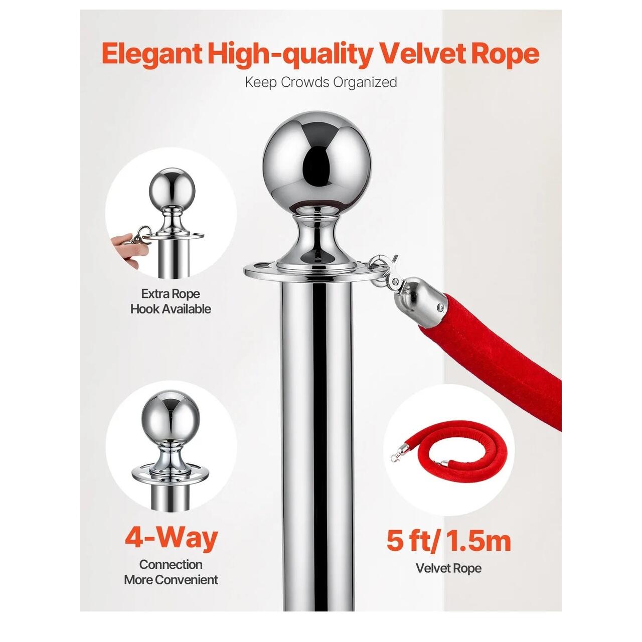 Configurare flexibila: Fiecare coada de stalpi vine cu o franghie de catifea de 1,5 m si conectori cu patru cai, facilitand configurarea si ajustarea spatiului dupa cum doriti. Este ideala pentru orice ocazie - indiferent de unde sau cum trebuie sa va gestionati spatiul!