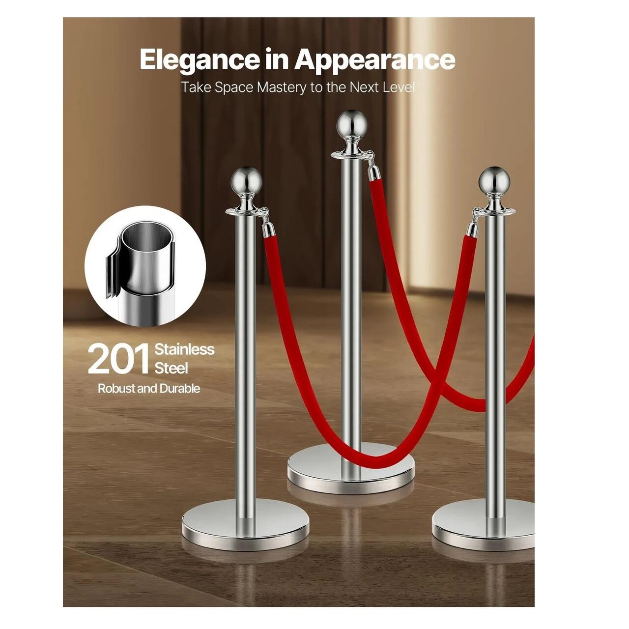 Control fiabil al multimii: Fabricat din otel inoxidabil 201 durabil, acest stalp de sustinere asigura o separare eficienta si o gestionare a multimii. Fie ca este vorba de o nunta, un muzeu sau o petrecere, este solutia ideala pentru organizarea spatiilor si mentinerea ordinii.