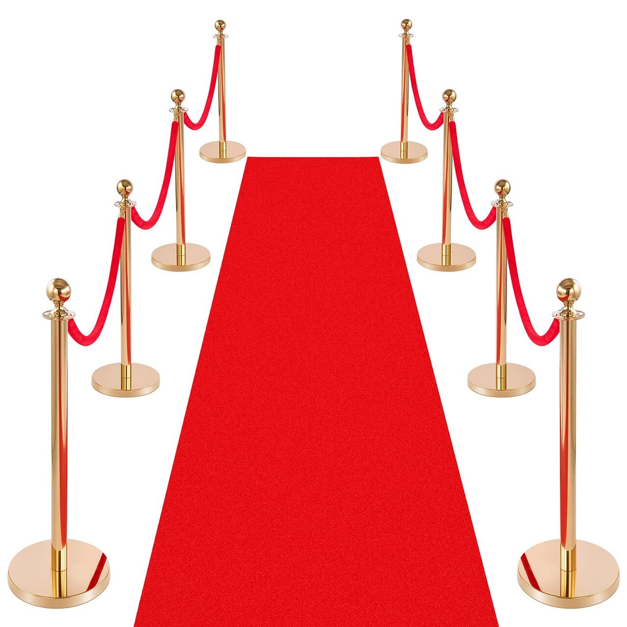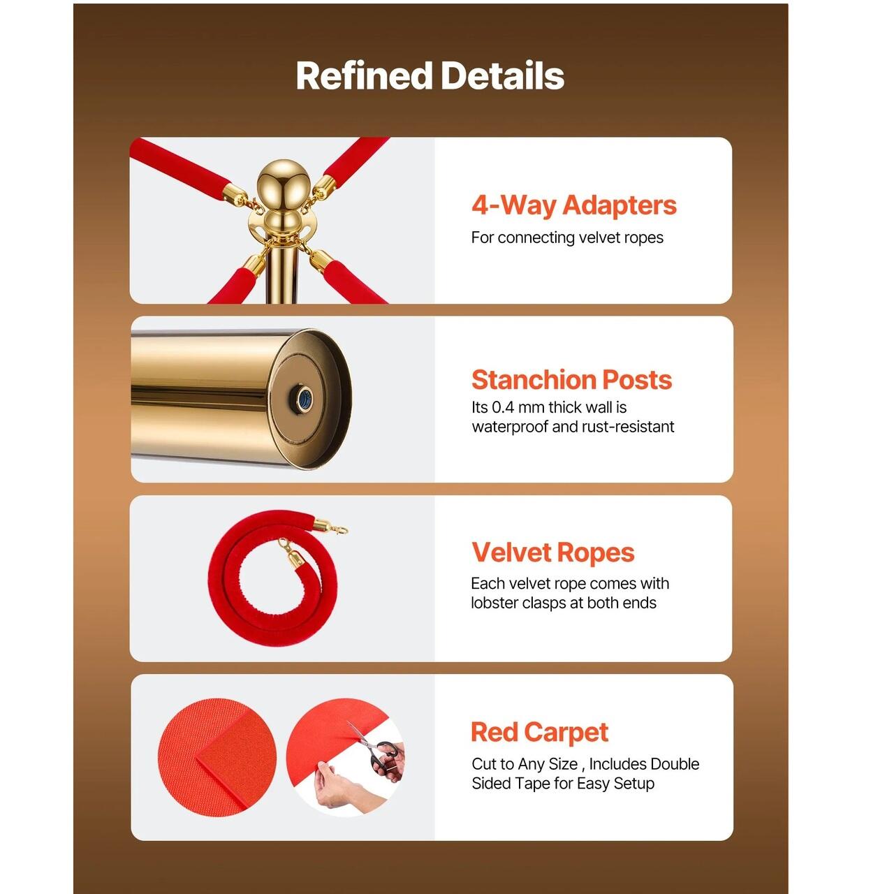 Cale de intrare VIP: Adaptorul de franghie cu 4 cai permite conectarea flexibila a mai multor franghii de catifea, in timp ce covorul rosu taiabil cu banda dublu adeziva inclusa faciliteaza crearea unei intrari elegante si organizate cu un set complet de bariere de control al multimii.