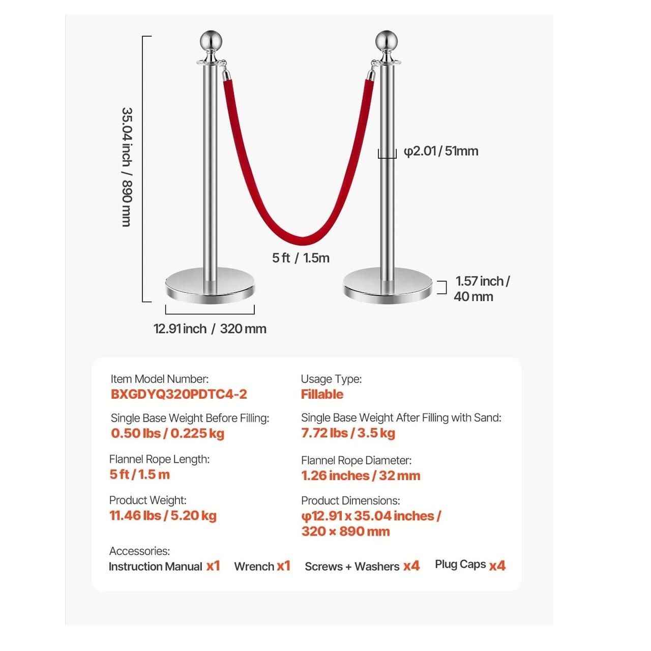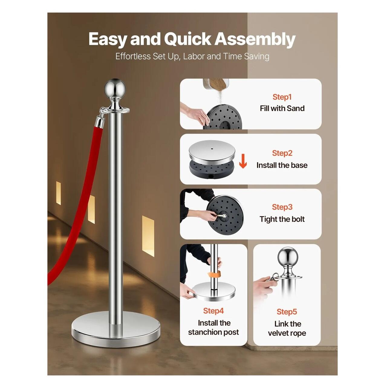 Asamblare rapida: Nu necesita unelte! Pur si simplu insurubati baza la locul ei, umpleti-o cu nisip si sistemul dvs. de control al multimii din franghie de catifea este gata de utilizare. Usor de instalat si chiar mai usor de utilizat oricand aveti nevoie.