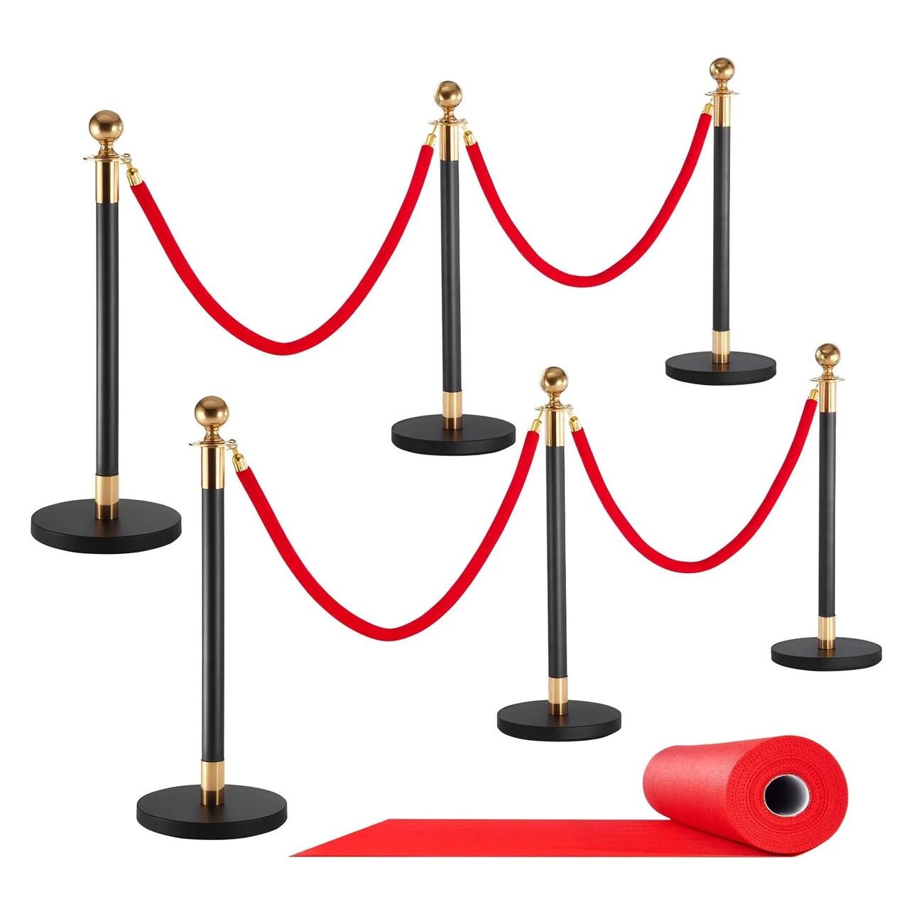 Cale de intrare VIP: Adaptorul de franghie cu 4 cai permite conectarea flexibila a mai multor franghii de catifea, in timp ce covorul rosu taiabil cu banda dublu adeziva inclusa faciliteaza crearea unei intrari elegante si organizate cu un set complet de bariere de control al multimii.