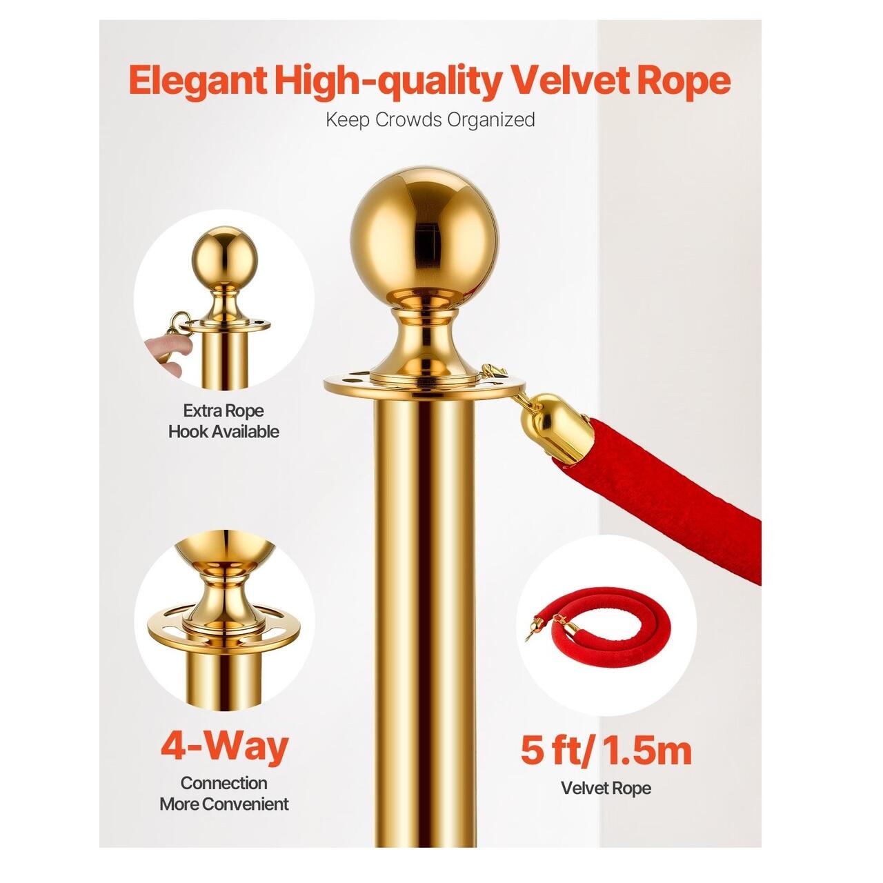 Configurare flexibila: Fiecare coada de stalpi vine cu o franghie de catifea de 1,5 m si conectori cu patru cai, facilitand configurarea si ajustarea spatiului dupa cum doriti. Este ideala pentru orice ocazie - indiferent de unde sau cum trebuie sa va gestionati spatiul!