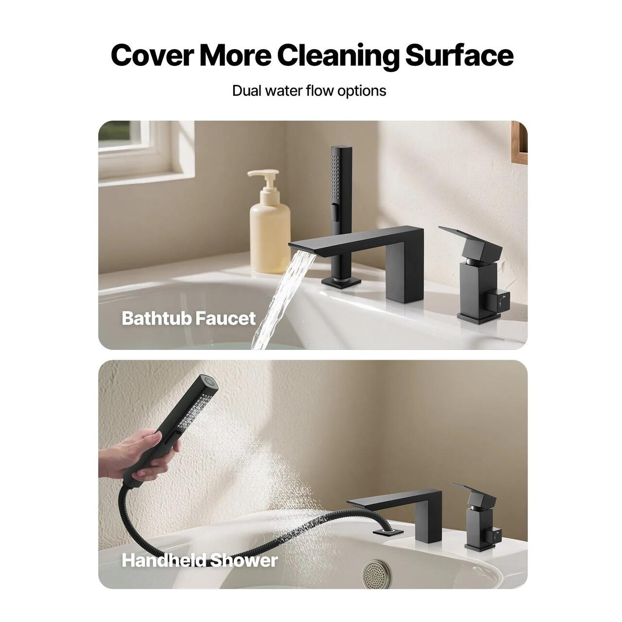 Moduri comutabile pentru baterie: Cu doua moduri distincte de apa, aceasta baterie de cada romana cu efect de cascada permite comutarea fara probleme intre umplerea cazii si utilizarea dusului manual. Extinde raza de curatare si ofera functionalitati versatile pentru o rutina de baie mai confortabila.