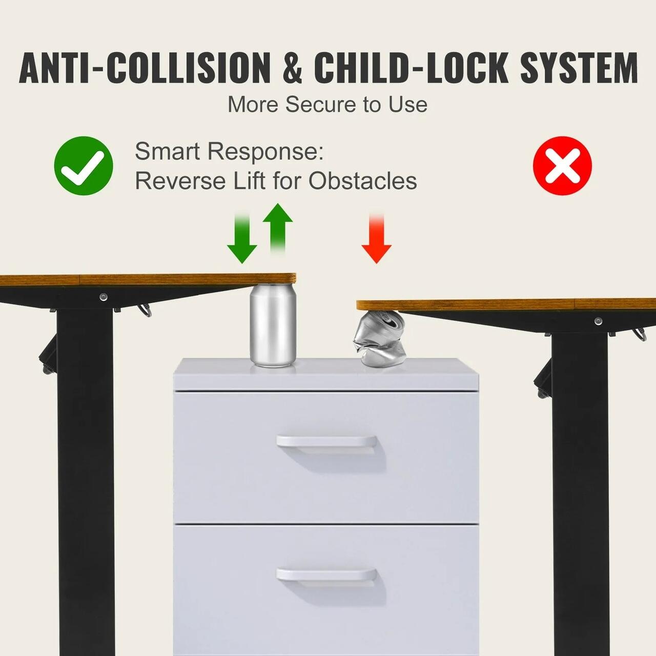 Protectie anti-coliziune si blocare pentru copii: Tehnologia anti-coliziune asigura ca, atunci cand intalneste obstacole in timpul ridicarii, biroul se misca in directia opusa pentru a evita coliziunile. Activarea modului de protectie anti-coliziune pentru copii este la fel de simpla ca o apasare lunga de 5 secunde a tastei „S”, asigurand siguranta copiilor si prevenind accidentele.