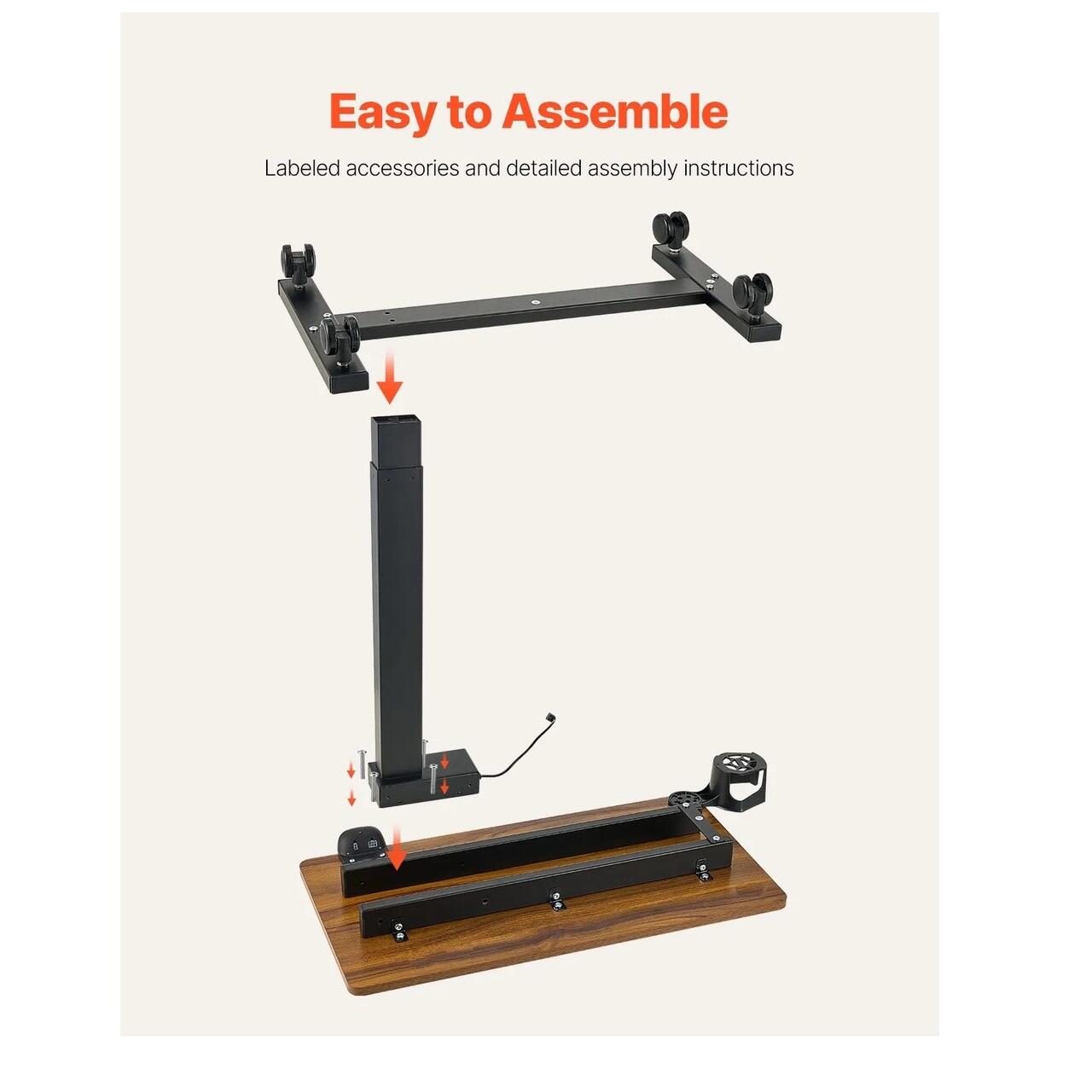 Inaltime reglabila: Cu un sistem electric eficient, aceasta masa de pat se ajusteaza de la 76 cm la 118,5 cm — ideala atat pentru stat pe scaun, cat si in picioare. In plus, blatul se inclina intre 0 si 60°, fiind ideala pentru citit, lucru sau desen.