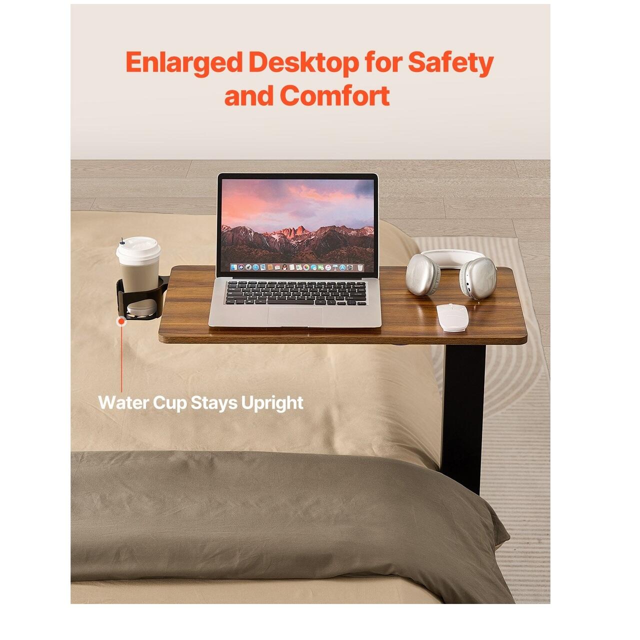 Birou spatios: Suprafata mare ofera mult spatiu pentru laptop, carti si alte obiecte esentiale. Suportul de pahare incorporat va permite sa asezati cu usurinta bauturile fara grija ca se varsa sau se rastoarna.