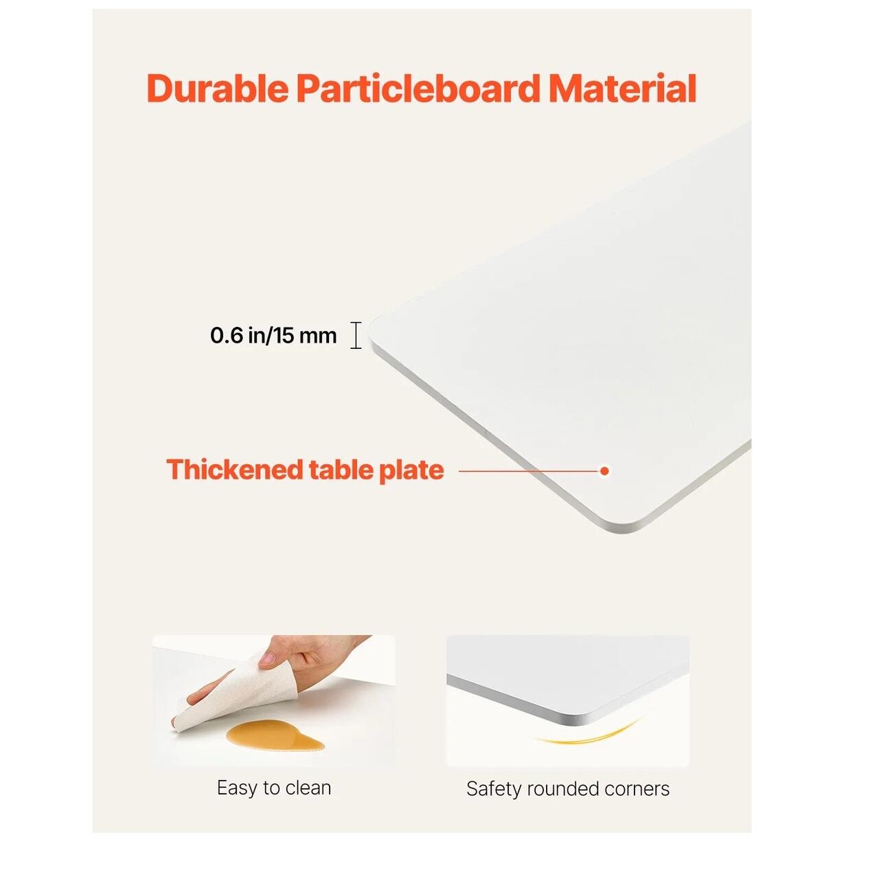Materiale premium: Construita din otel rezistent acoperit cu pulbere si PAL ingrosat, aceasta masa poate sustine pana la 30 kg langa coloana si 10 kg pe marginea blatului.