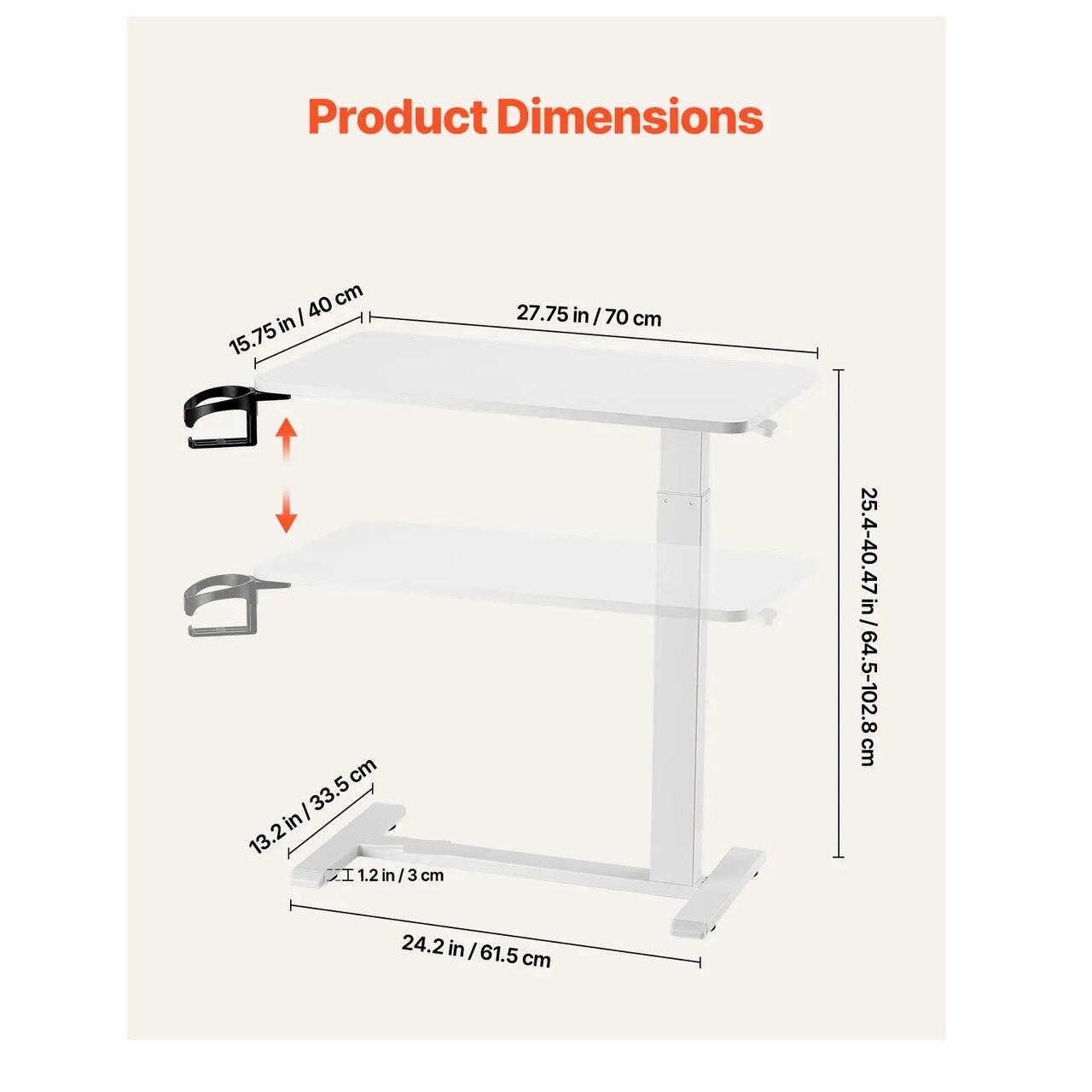 Birou de Pat/Canapea, Reglare hidraulica inaltime 70x40x64.5/102.8 cm, Otel/Pal, Alb