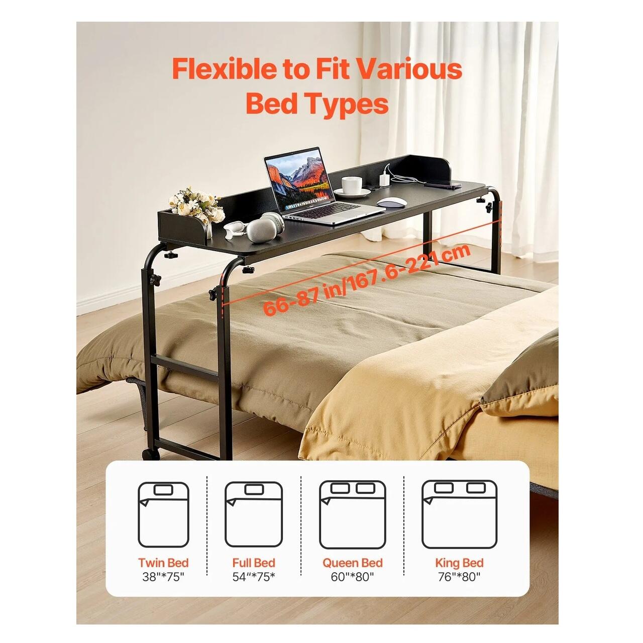 Design reglabil: Aceasta masa de pat va permite sa modificati cu usurinta inaltimea intre 88,8 si 101,6 cm. Indiferent daca stati asezati sau in picioare, puteti gasi inaltimea ideala. Lungimea extensibila (167,6-221 cm) o face compatibila cu diverse tipuri de paturi.