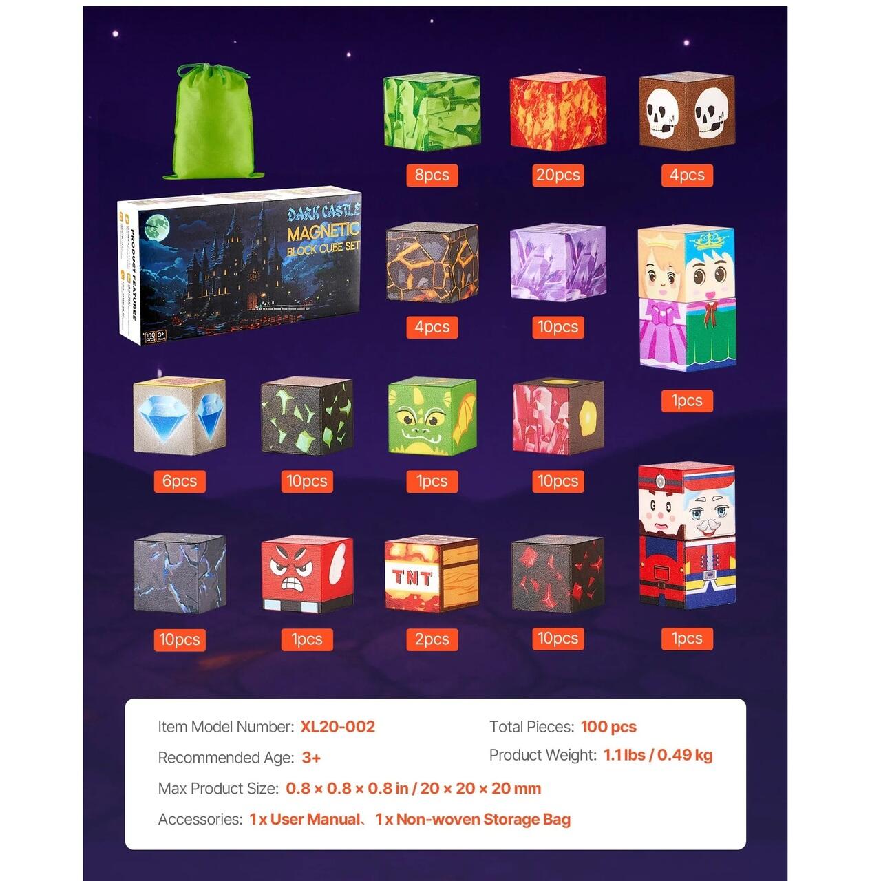 Set constructie Blocuri magnetice 100 buc, Castel Intunecat, structura 3D, Geanta depozitare