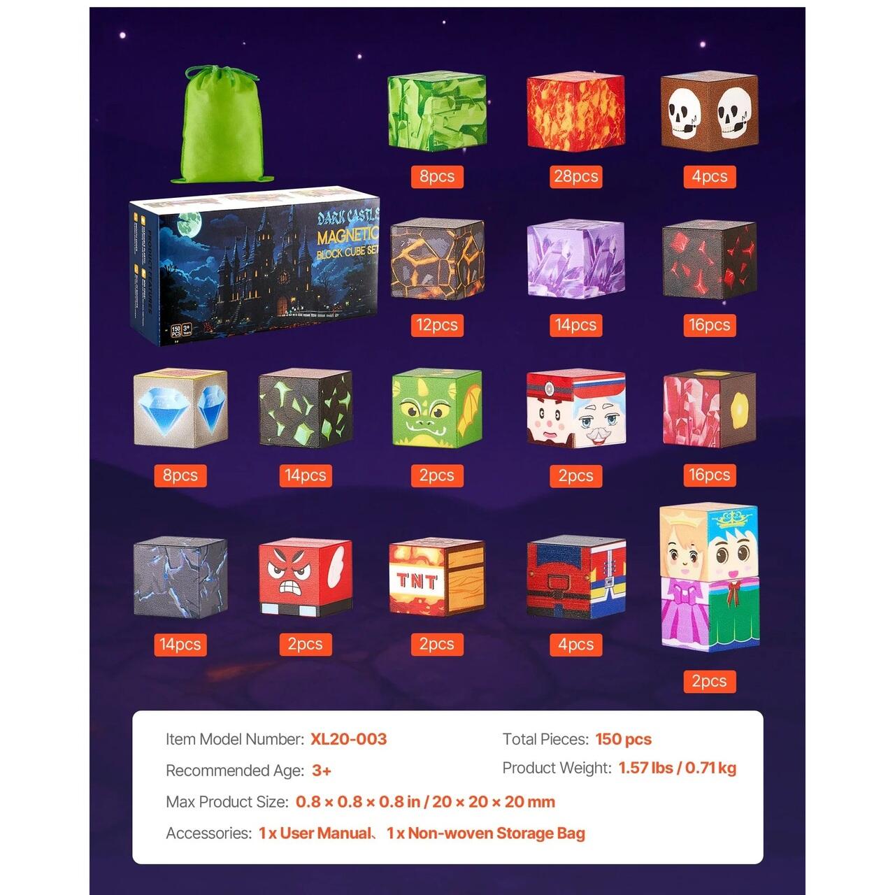 Depozitare usoara: Geanta de depozitare din material textil inclusa face curatarea rapida si usoara. Cuburile noastre magnetice de constructie sunt usoare si portabile, astfel incat copilul dumneavoastra le poate lua oriunde pentru distractie creativa in deplasare.