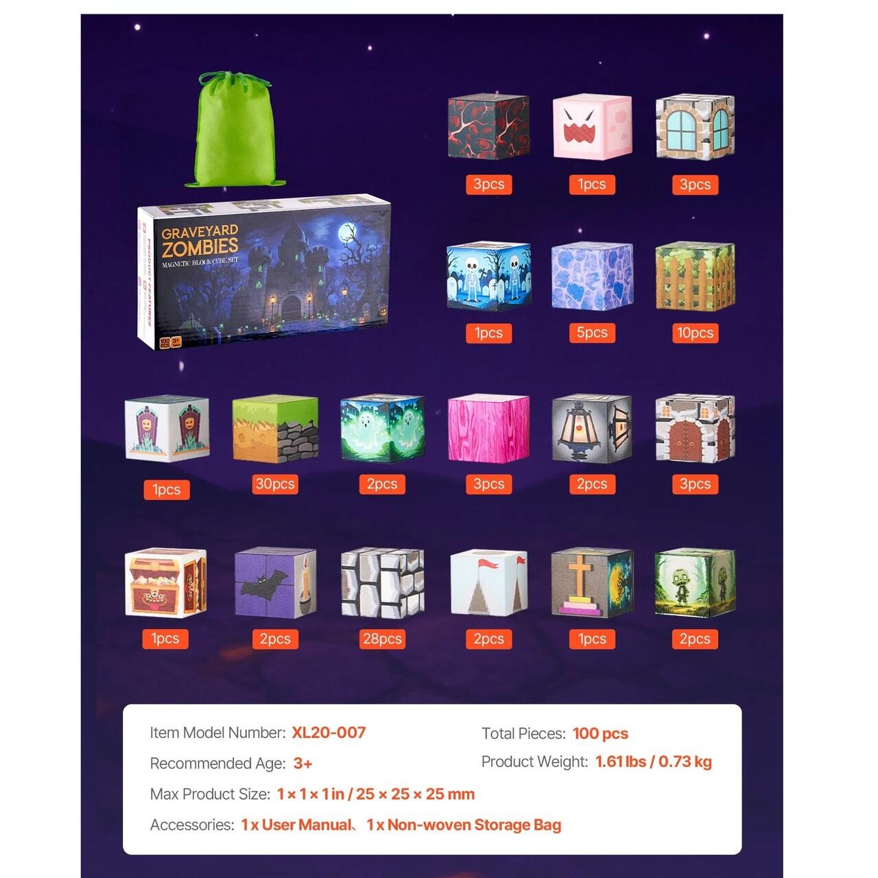 Set constructie Blocuri magnetice 100 buc, Zombi, structura 3D, Geanta depozitare