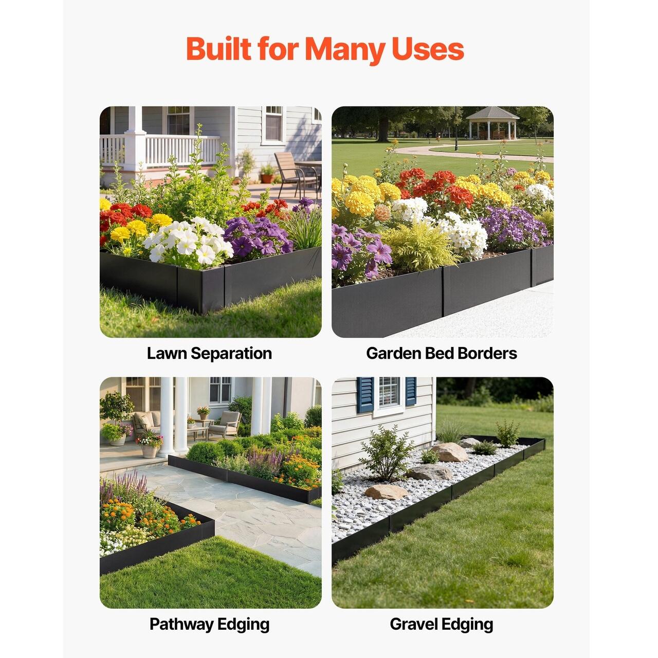 Functioneaza in toate spatiile exterioare: Aceasta bordura metalica pentru curte se potriveste in straturile de flori, aleile si zonele de separare. Designul structurat ajuta la organizarea curtilor, adaugand in acelasi timp un aspect peisagistic elegant si finisat.