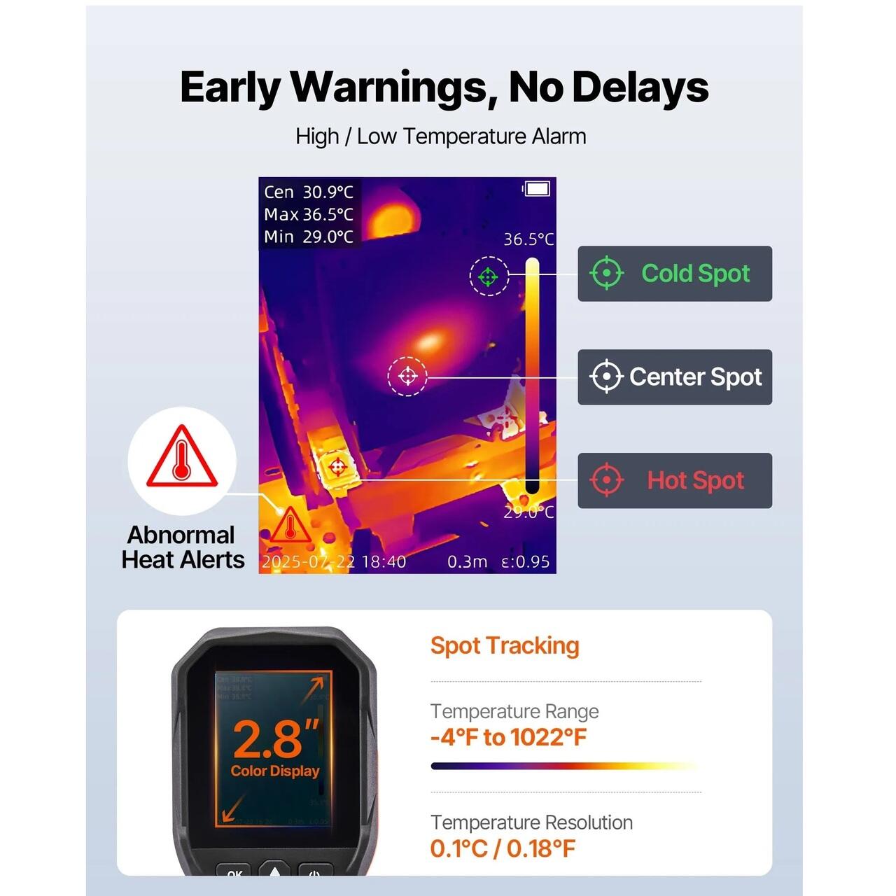 Detectare rapida a defectiunilor: Camera noastra de termoviziune cu infrarosu dispune de alarme incorporate pentru temperatura ridicata/scazuta, care monitorizeaza automat abaterile si emite alerte instantaneu. Va ajuta sa identificati rapid zonele de supraincalzire sau temperatura scazuta, sa localizati cu precizie defectiunile si sa detectati riscurile ascunse legate de caldura, facand problemele potentiale clar vizibile pentru actiuni timpurii.