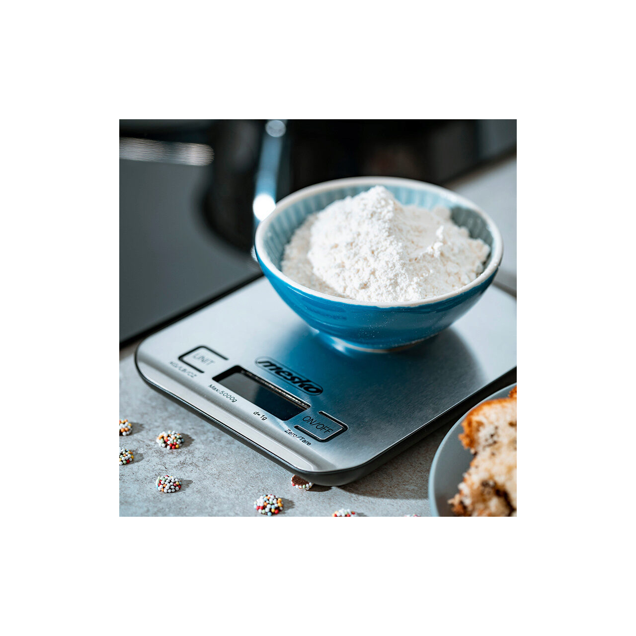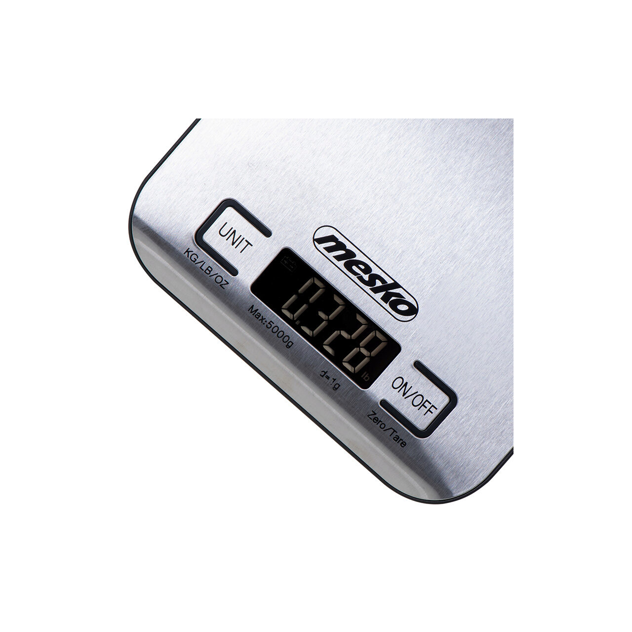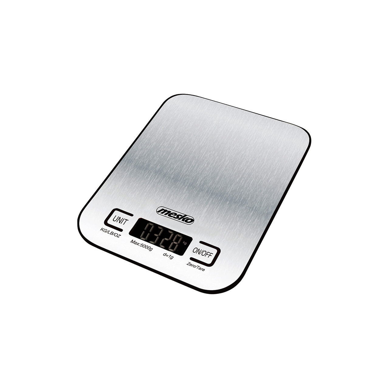 Cantar de bucatarie ultra subtire, Mesko Inox, Ecran LCD, 1g-5kg, Baterie 2 x AA