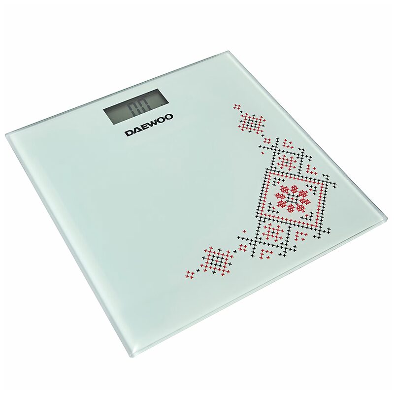 Specificatii tehnice Brand: Daewoo Greutate maxima suportata (kg): 150 Material: sticla securizata Tip: electronic Forma: patrata Tip ecran: LCD Functii: - Auto zero; - Oprire automata; - Indicator suprasarcina; - Indicator baterie scazuta Alimentare: 1 x baterie CR2032 (3V lithium) Oprire automata: Da Tip pornire: automata Diviziune (g): 100 Unitate de masura: kg Dimensiuni Lxlxh (cm): 32 x 32 x 3.4 Dimensiune ambalaj: 32.4 x 33.8 x 3.4 cm Culoare: alb/negru/rosu Alte caracteristici: grosime sticla securizata: 6 mm