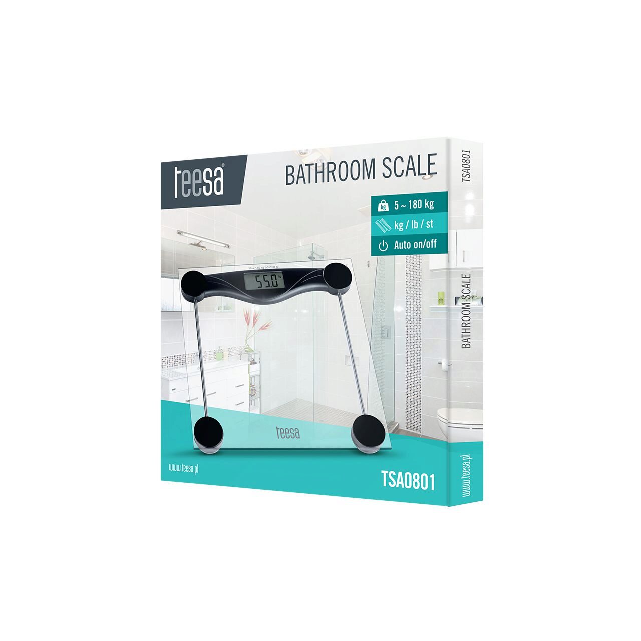 Cantar din sticla securizata, Teesa max 180 Kg, ecran LCD, 1 x CR2032