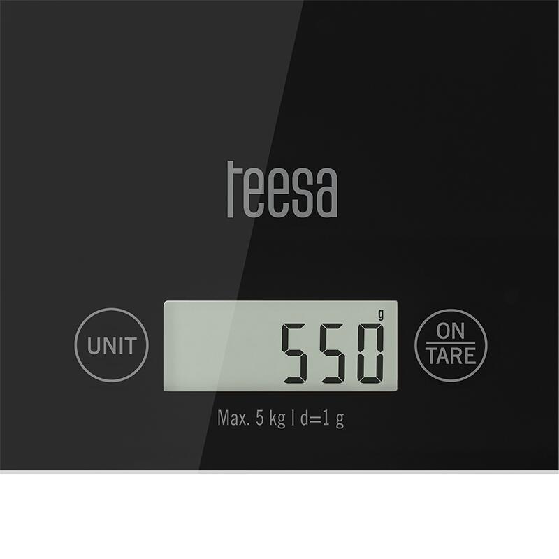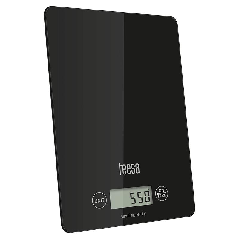 Cantar electronic de bucatarie, sticla, max 5 kg, precizie 1g, 2x CR2032, LCD, Negru