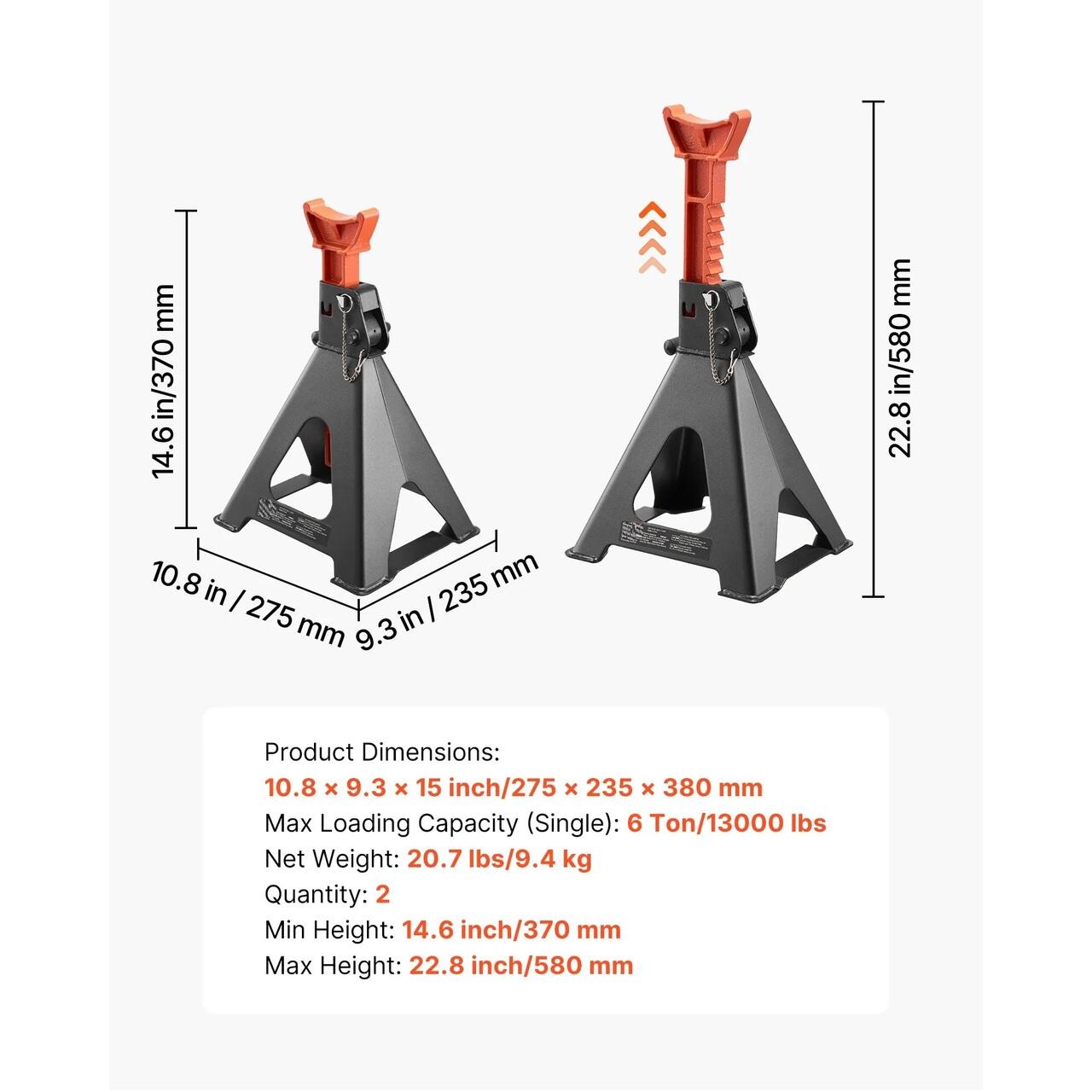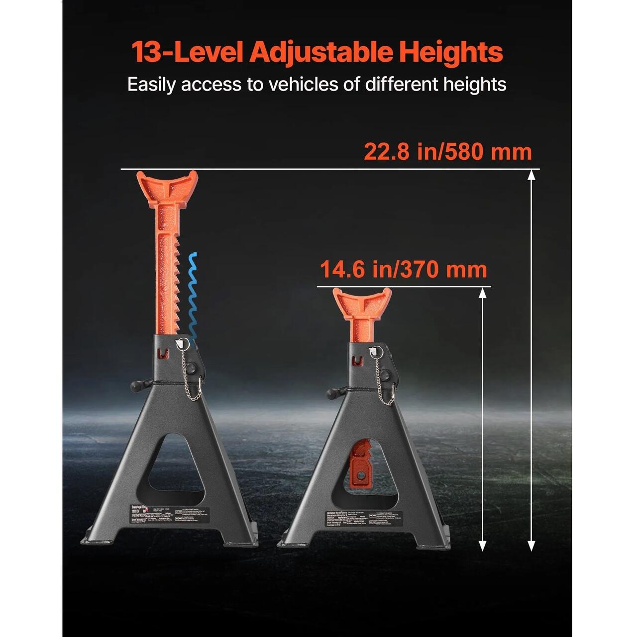 Design cu blocare dubla: Pentru o incredere sporita in timpul reparatiilor vehiculului, suporturile pentru cricuri robuste sunt dotate cu un clichet actionat de maner si un stift de blocare metalic. Componentele intarite si rezistente la uzura ofera performante constante si o blocare fiabila in timpul utilizarii.