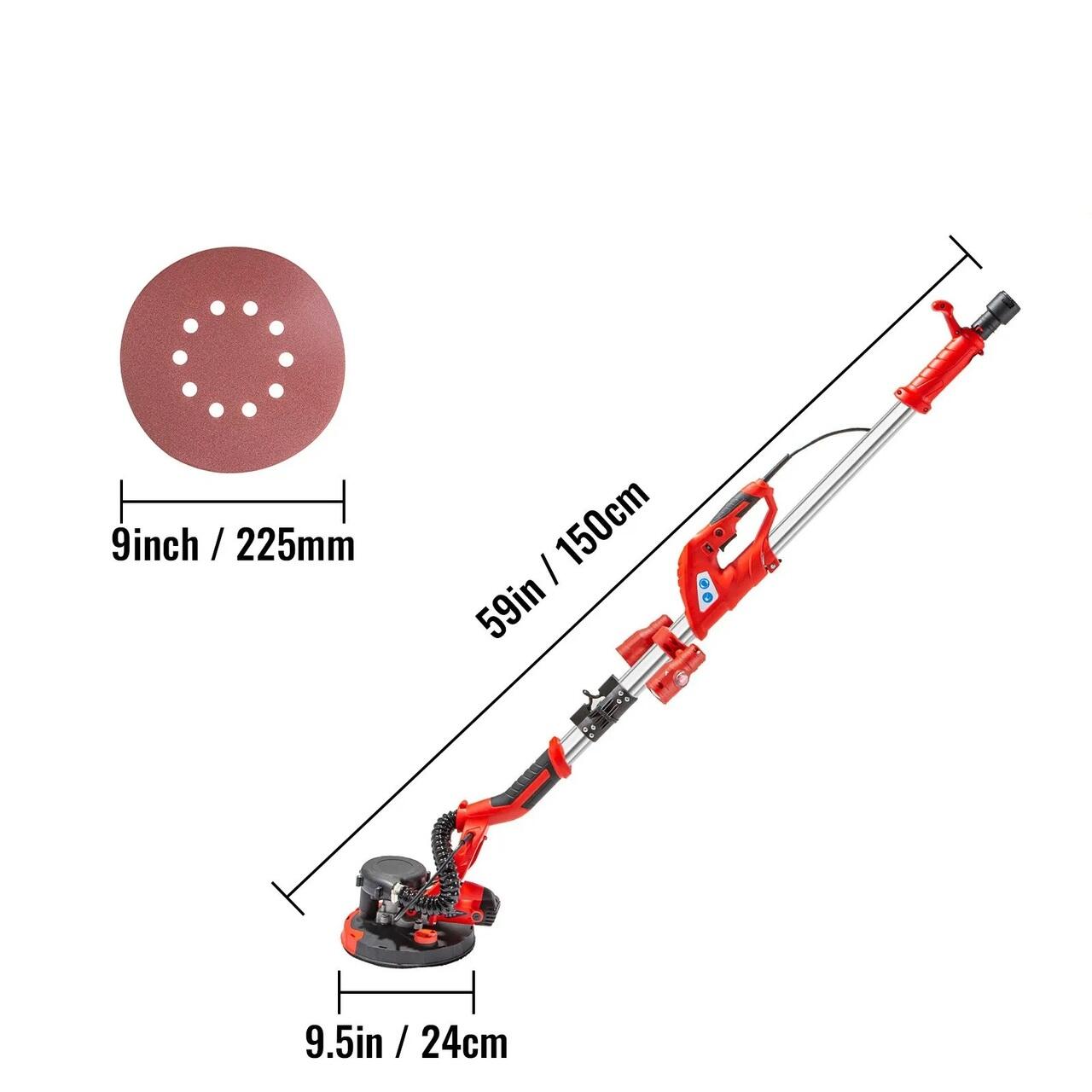 Slefuitor pentru pereti, tavane, plafoane si rigips cu brat telescopic 850 W, 800-1750 rpm, Led, sac aspirare, 6 x discuri