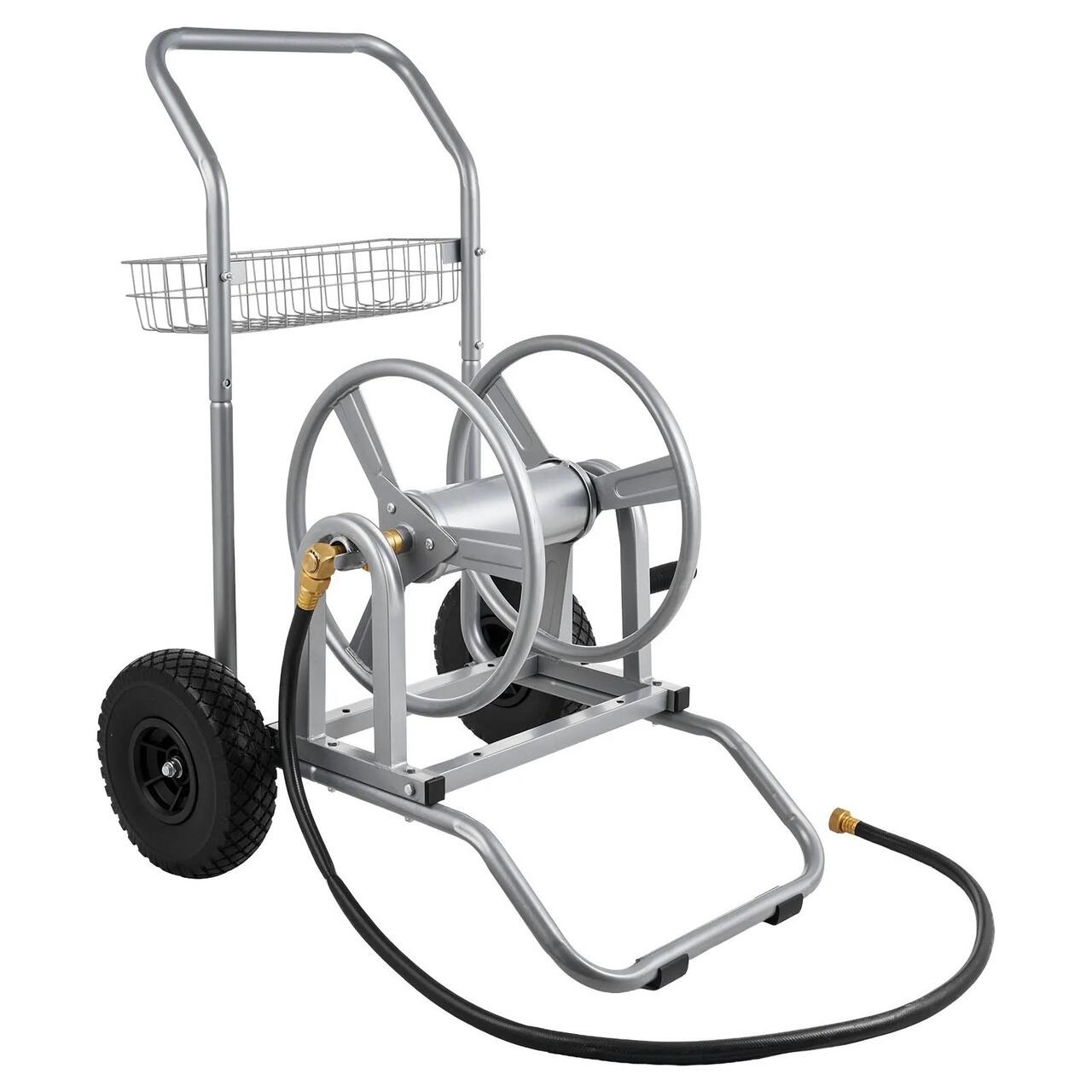 Carucior cu tambur si cos pentru furtun, otel, dimensiune 675 x 610 x 900 mm, maxim 90 m pentru diametru de 1/2 inch, 2 roti