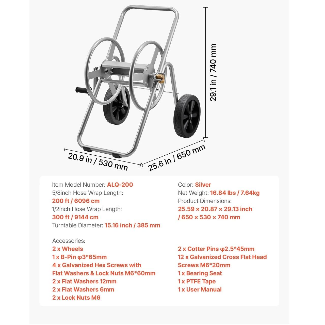 Constructie rezistenta la coroziune: Construit din otel Q235A si fitinguri rapide din alama, acest carucior pentru furtun de gradina a trecut teste riguroase de pulverizare cu sare. Acesta gestioneaza apa de ploaie si apa de inalta presiune fara rugina sau scurgeri, oferind o functionare fiabila pentru nevoile de curatenie rezidentiale si comerciale.