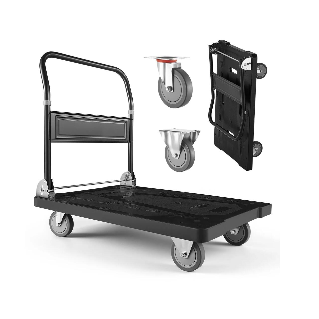 Otel rezistent, capacitate de 453,6 kg: Fabricat cu o platforma din PP si un cadru din otel aliat, acest carucior pliabil rezista la indoire sub sarcini grele. Suporta pana la 453,6 kg, muta cutii si unelte cu mai putina efort si cu o durabilitate ridicata.